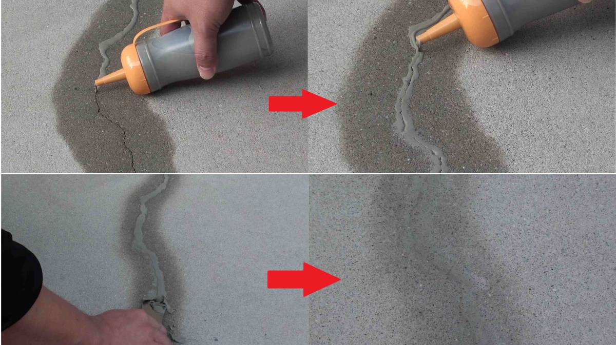 セメント系の材料では困難だった簡単なクラックの補修が、当社のセメント系クラック補修材