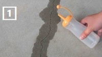 1コンクリート床面のクラックを清掃後、水打ちをします。