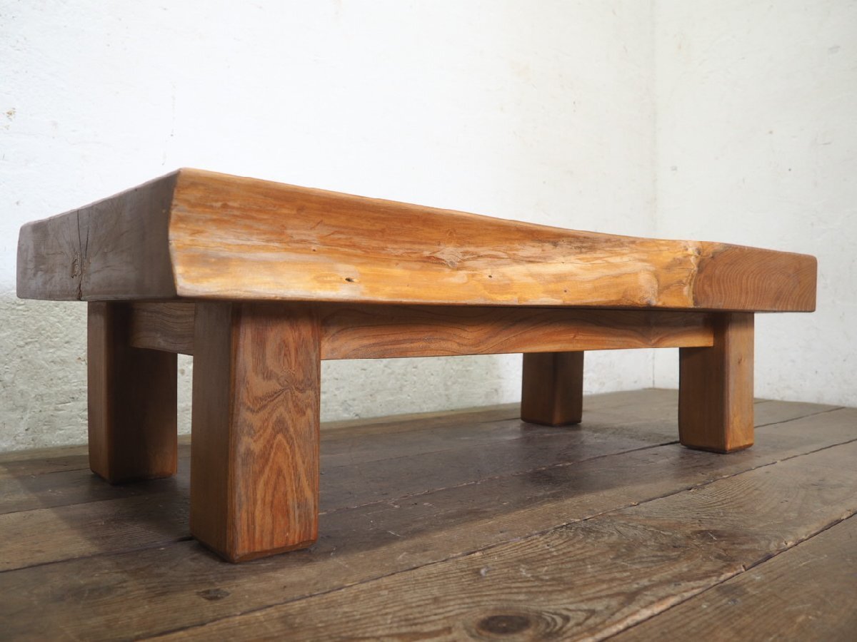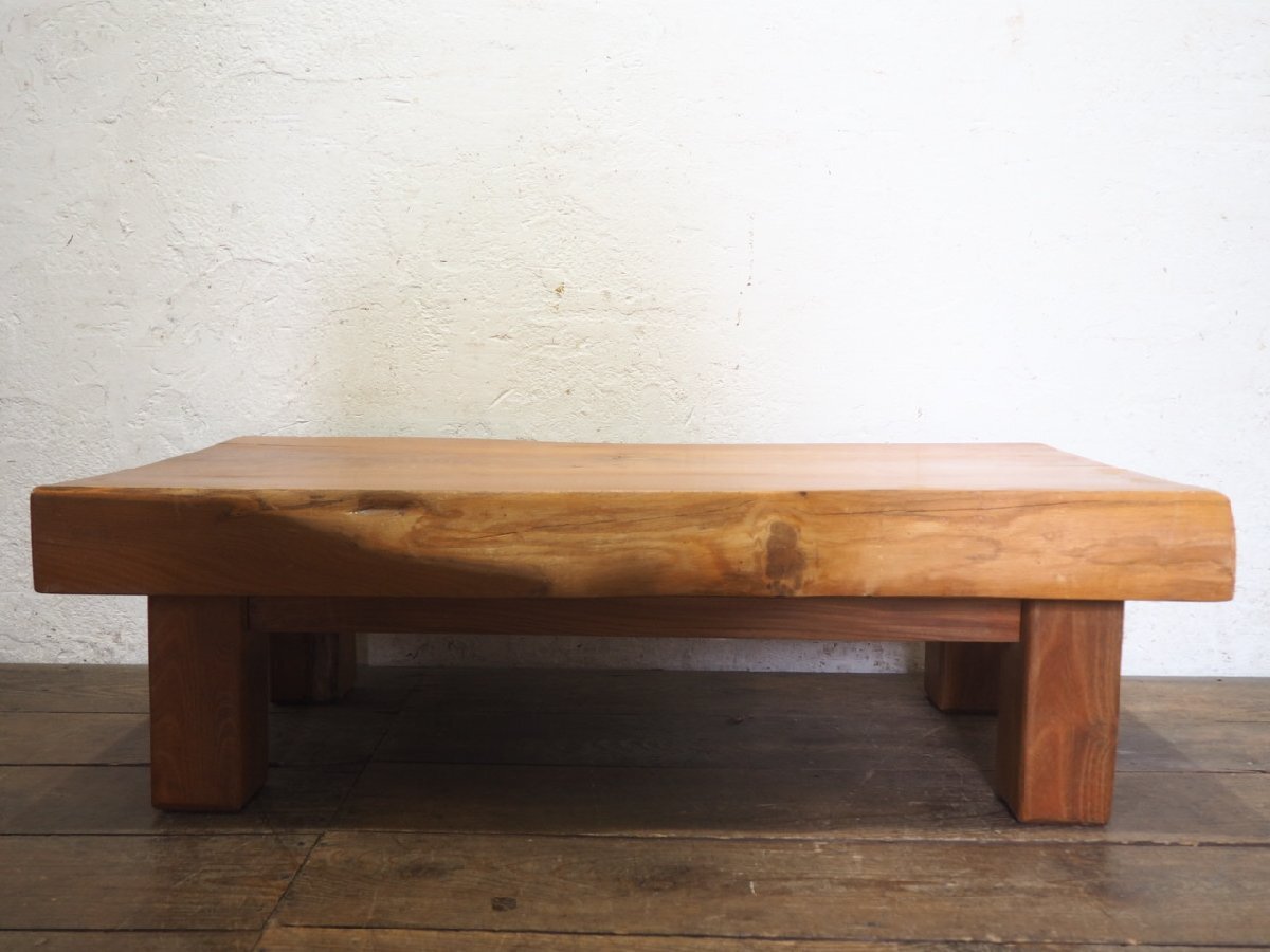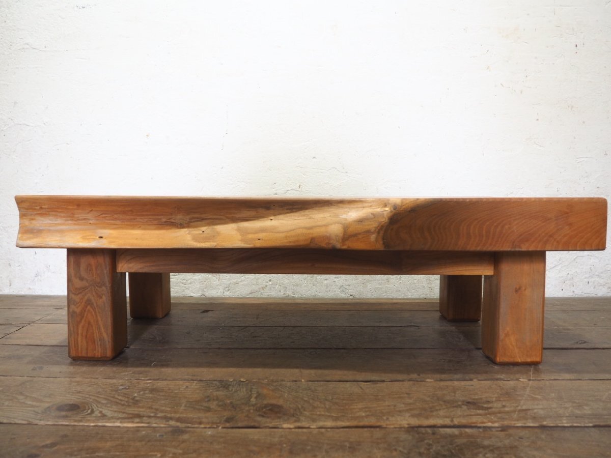 重厚な欅のの古い木製センターテーブルです。