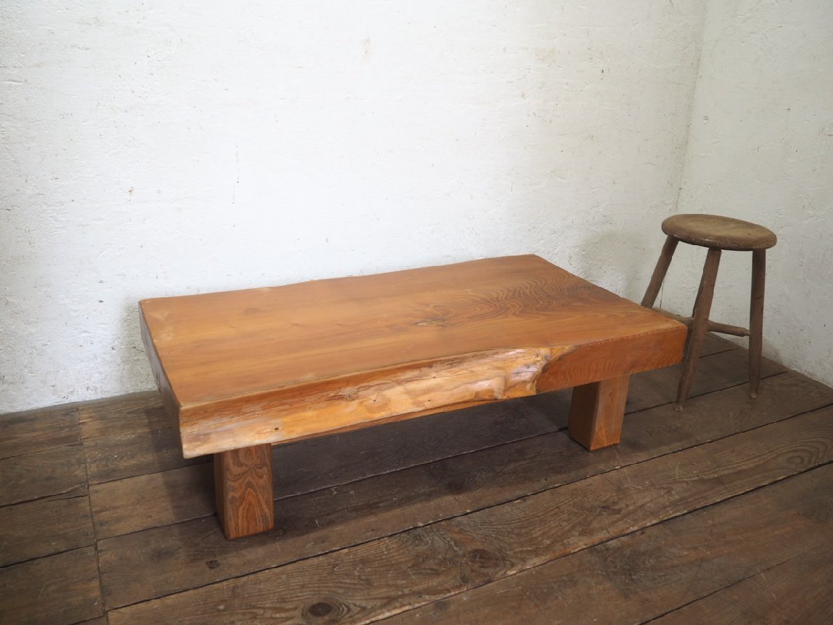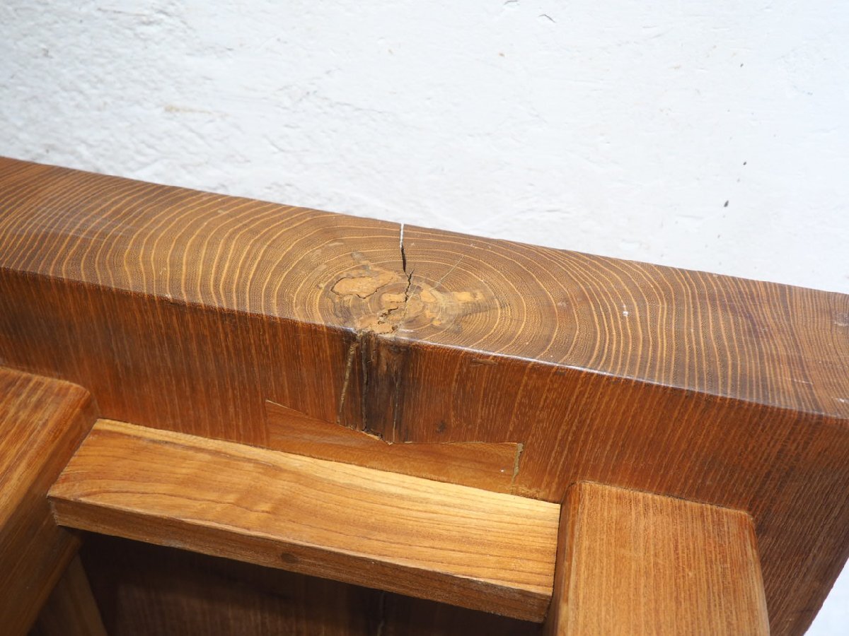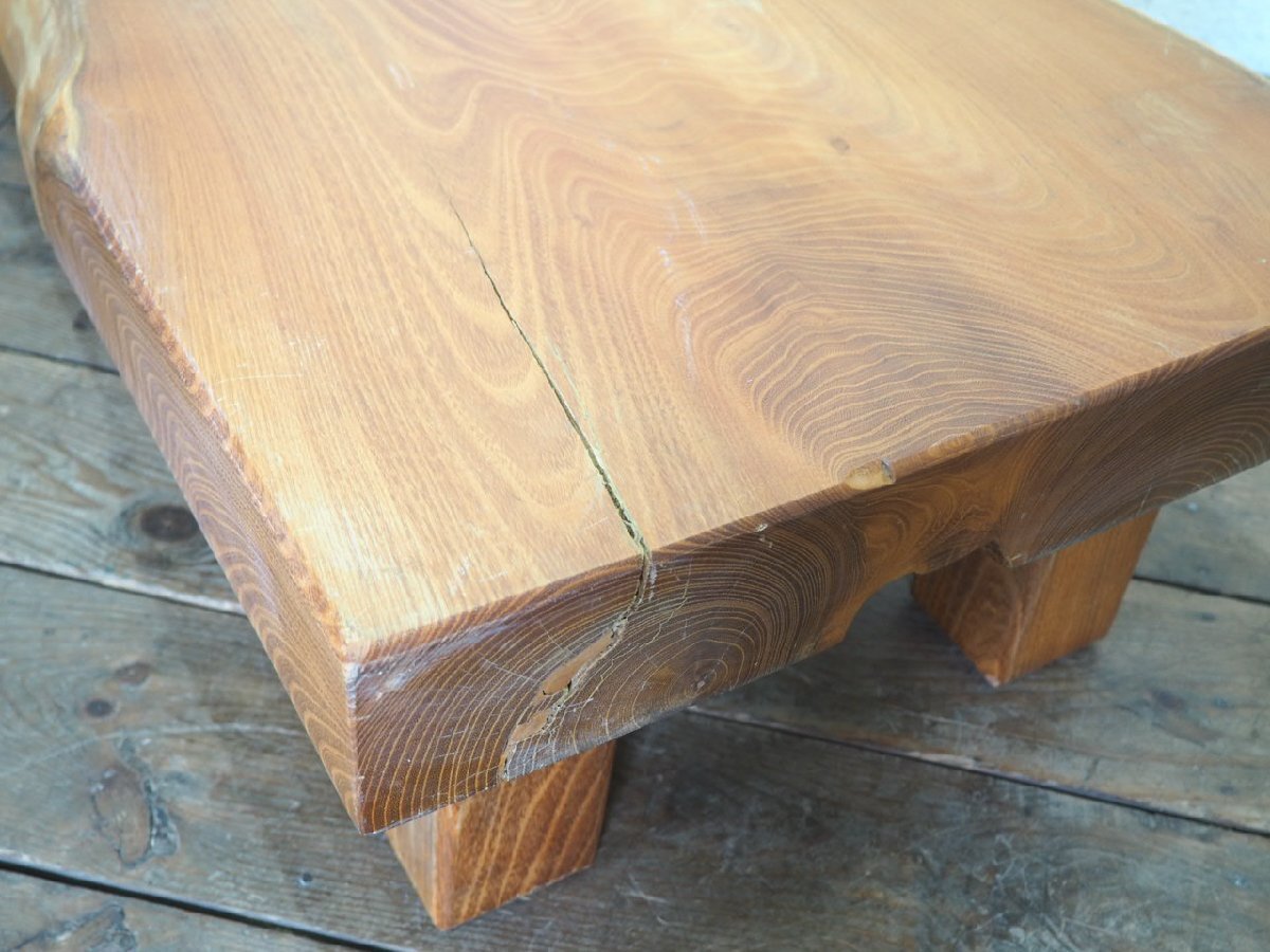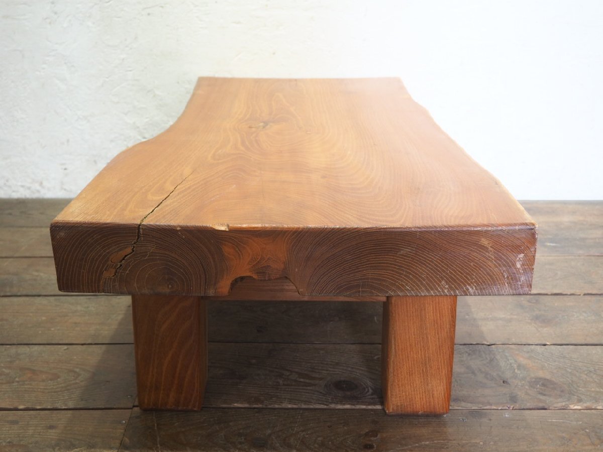 タ荷V0259◆天板W100cm×D54,5cm◆厚み9,5cm◆重厚な欅の古い木製センターテーブル◆ケヤキ 座卓 ちゃぶ台 レトロ アンティークL(ヤB)笹4
