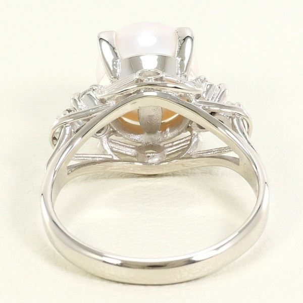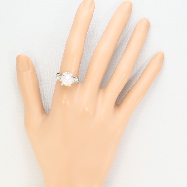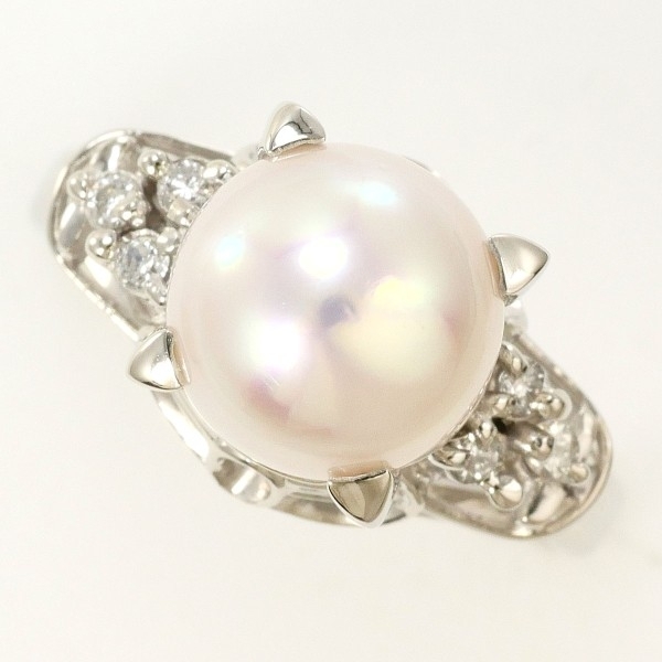 PT900 リング 指輪 12.5号 パール(真珠) 約9mm ダイヤ 0.09 総重量約7.1g 中古 美品 送料無料 | |