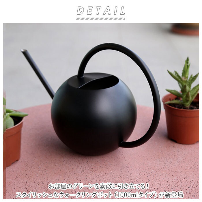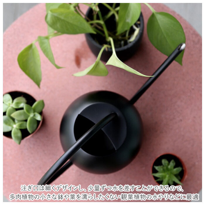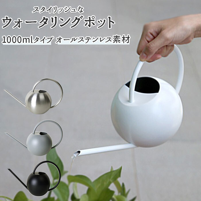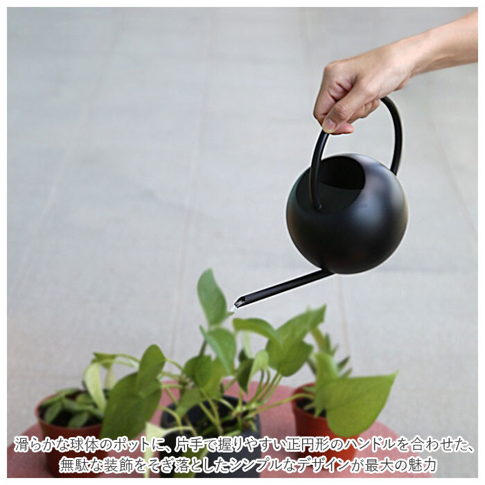 | 商品説明 | ・・お部屋のグリーンを素敵に引き立てる!スタイリッシュなウォータリングポット(1000mlタイプ)が新登場。 ・滑らかな球体のポットに、片手で握りやすい正円形のハンドルを合わせた、無駄な装飾をそぎ落としたシンプルなデザインが最大の魅力。 ・開口部が半月型に大きく開いており、キッチンや洗面台の水栓からの給水がスムーズ。 ・注ぎ口は細くデザインし、少量ずつ水を差すことができるので、多肉植物の小さな鉢や葉を濡らしたくない観葉植物の水やりなどに最適。 ・サビを気にする必要のない、オールステンレス素材。 ・ソリッドな質感が存在感を放つシルバーをはじめ、インテリアに調和するシックなモノトーンカラーなど、洗練された大人カラーをラインナップ。 ・ガーデニングやインテリアが好きな方へのプチギフトに最適。 |