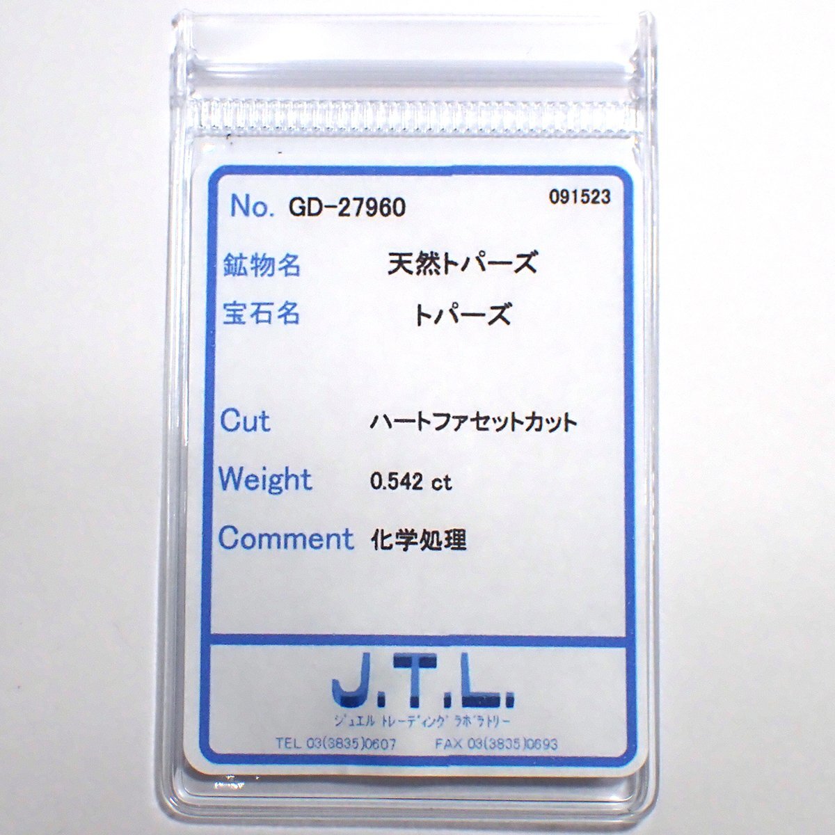 商品状態【やや傷や汚れあり】の天然トパーズです。 JTL(ジャパントレーディングラボラトリー)のソーティング付のルースです。 トパーズは11月の誕生石としても知られています。 |