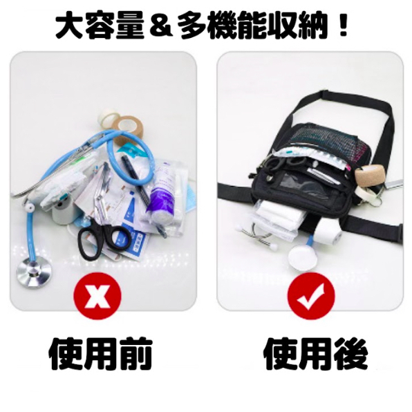 いろいろな物がしまえる機能的なナースバッグ(腰袋)です。