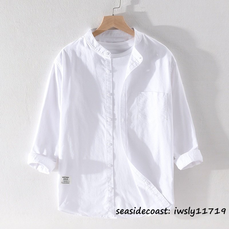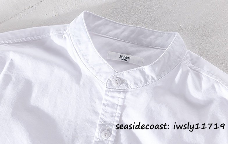 メンズシャツ 七分袖シャツ 立ち襟 ワイシャツ ビジネス 無地 カジュアルシャツ 半袖シャツ 春夏 薄手 Tシャツ 柔らか 紳士服 ホワイト L