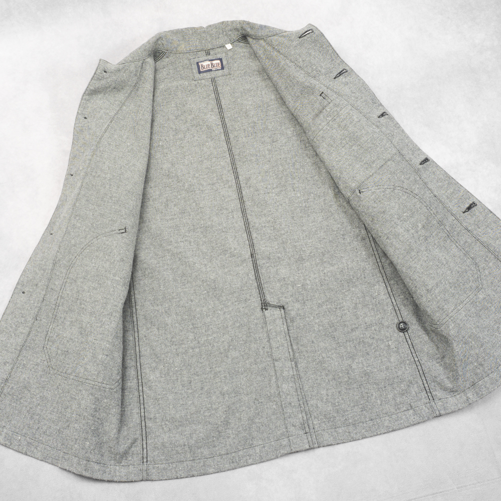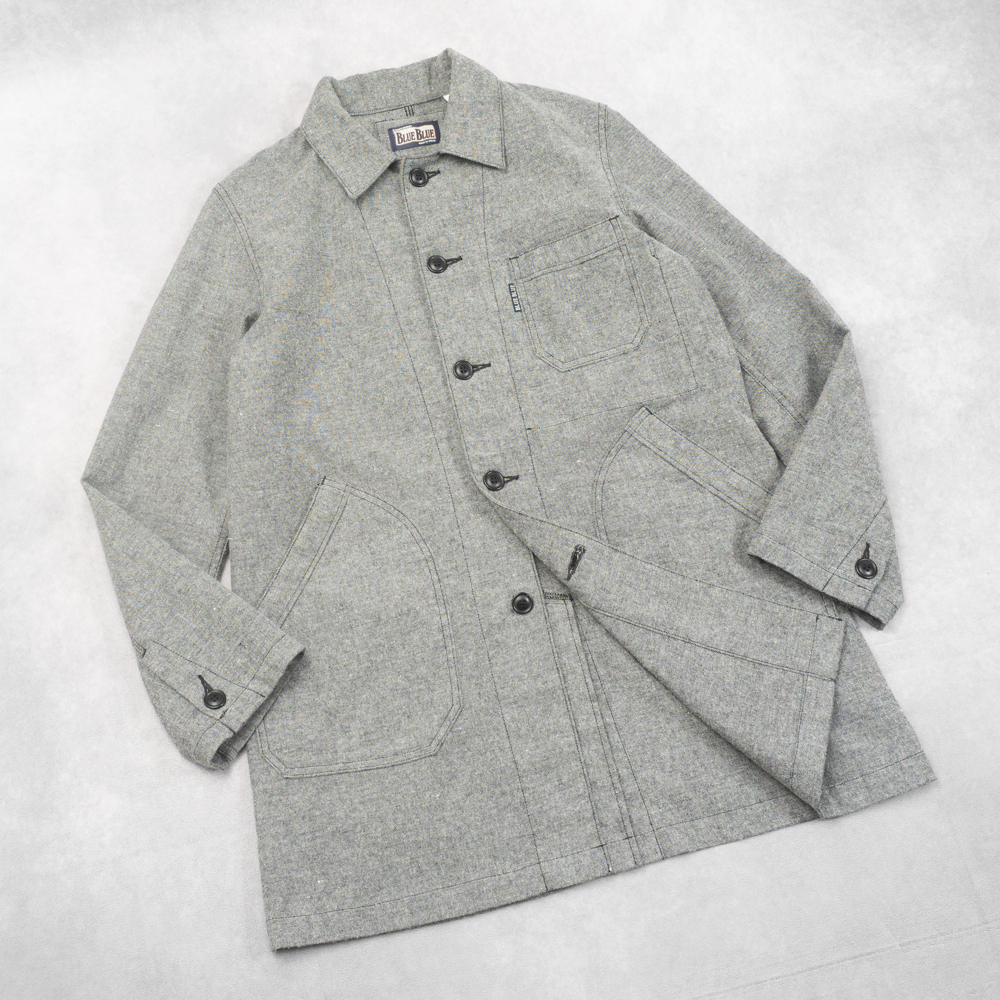 美品『BLUE BLUE』ショップコート size:1(S~M相当) グレー コットンウール 日本製 ハリウッドランチマーケット メンズ 管理452