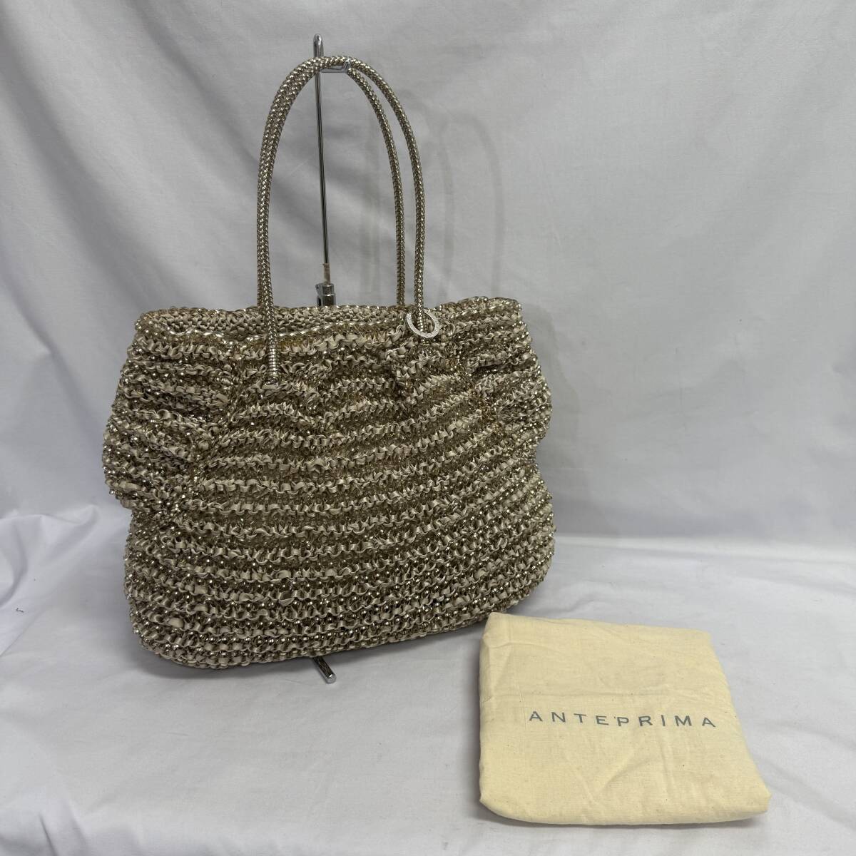 | 【長期保管品】 ANTEPRIMA アンテプリマ ワイヤートートバッグ ゴールド系 ロゴリング セミショルダー 肩掛け レディースバッグ | ||
