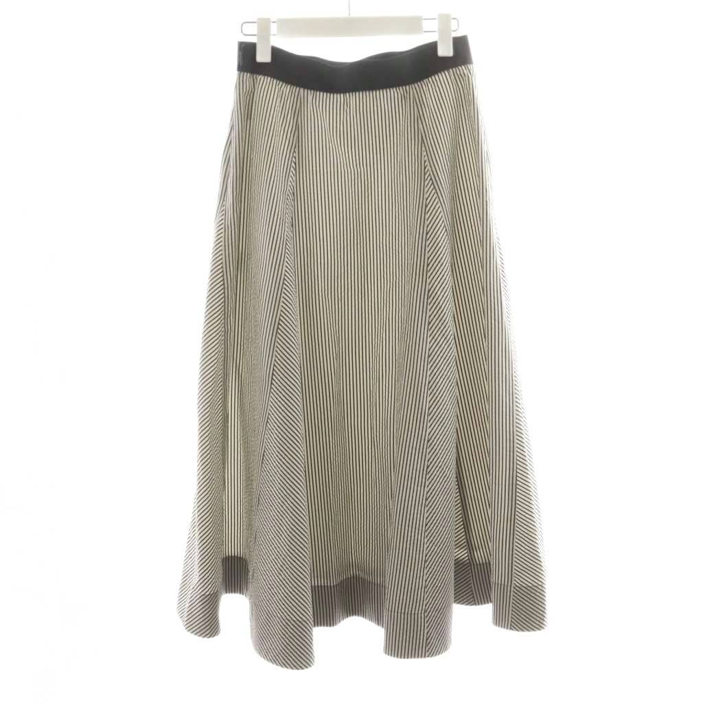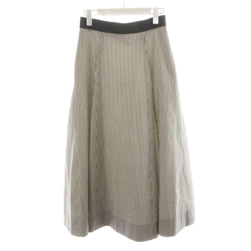 アナイ ANAYI 24SS サッカーストライプマチフレアスカート ロング丈 38 黒 ブラック 白 ホワイト 10241711470 /AN9 レディース