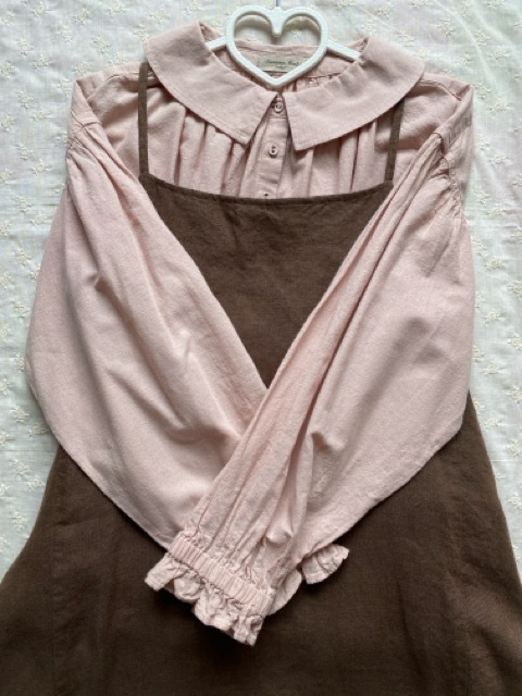 合わせているSM2のパウダーガーゼブラウスピンク、スモッキング刺繍ブラウスベージュは別出品しております。