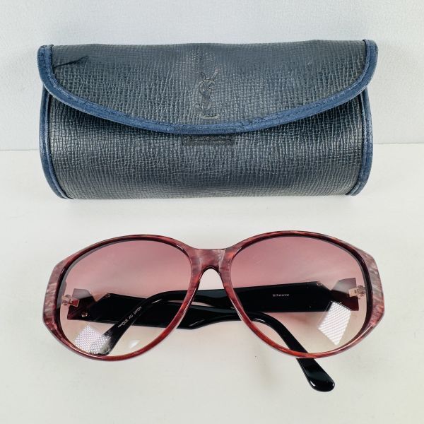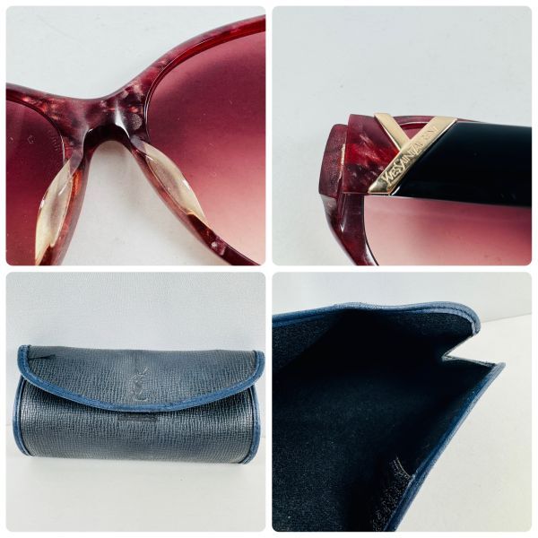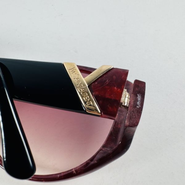 商品説明 | ご覧いただきありがとうございます。Yves Saint Laurent(イヴ・サンローラン)のヴィンテージサングラスです。 テンプルの大きな「Y」ロゴ金具と、ピンク系グラデーションレンズ×レッドマーブル調フレームが目を惹く一本。ケース付き。 仕様