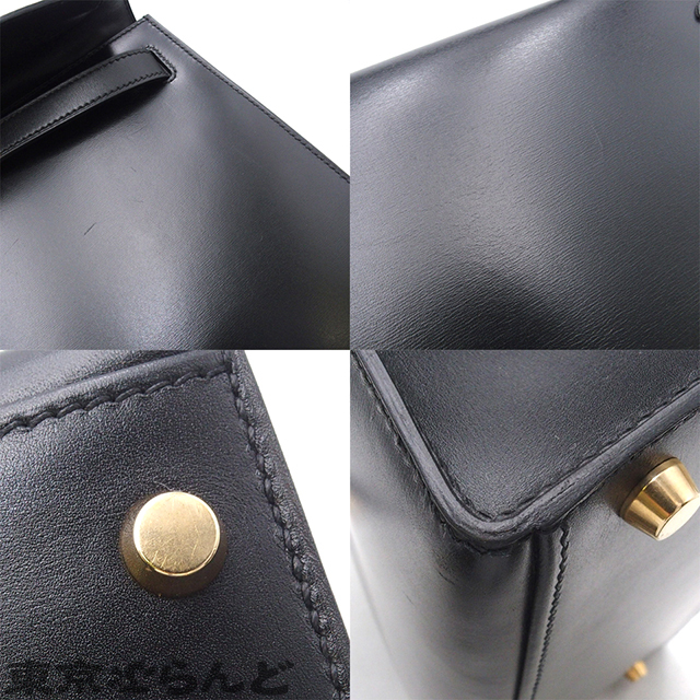 101803508 エルメス HERMES ケリー28 外縫 □C刻印 ブラック ゴールド金具 ボックスカーフ ハンドバッグ レディース