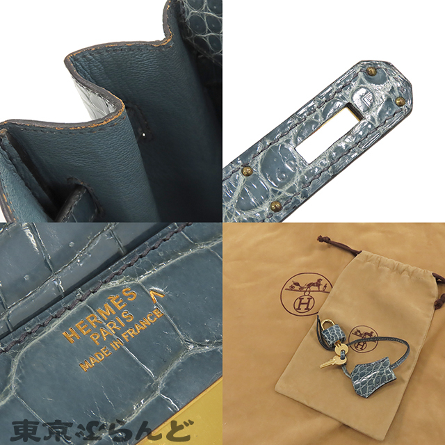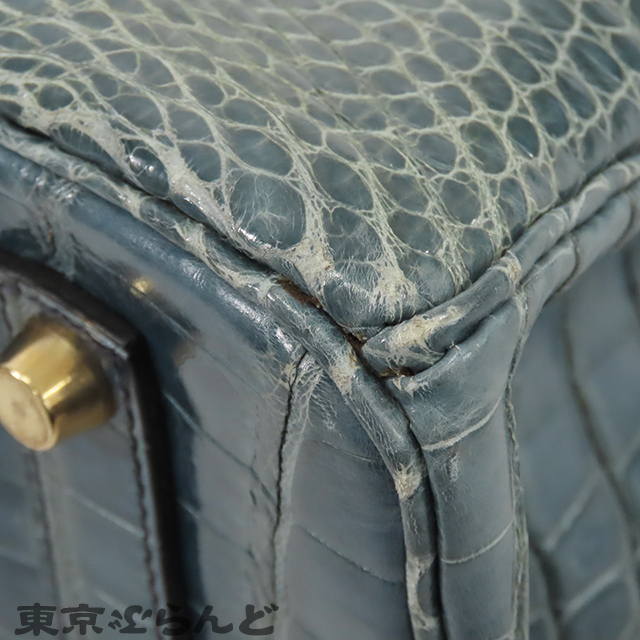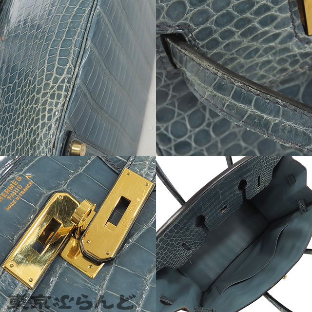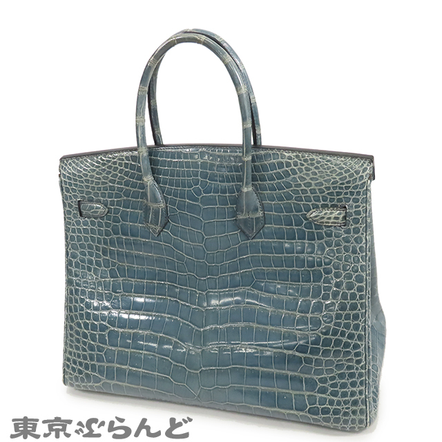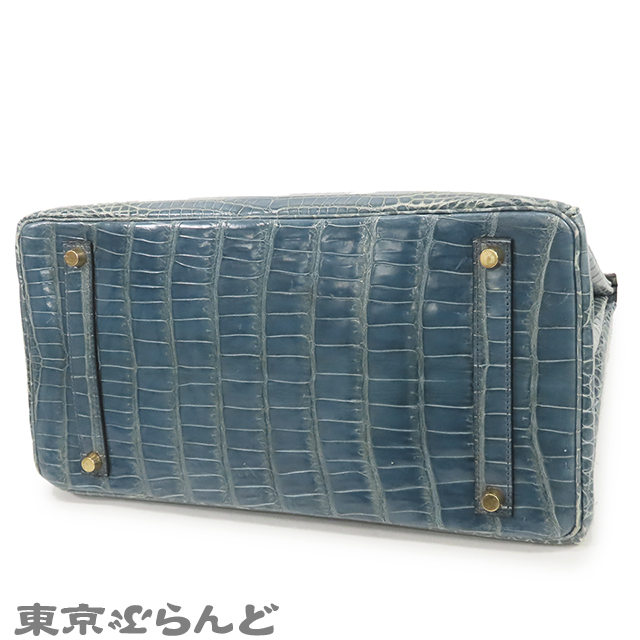 101805524 エルメス HERMES バーキン 35 □P刻印 青 ブルージーン ゴールド金具 ポロサス クロコダイル ハンドバッグ レディース
