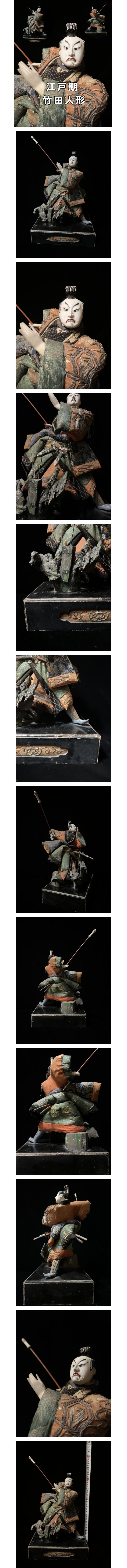 | 商品説明 | 江戸時代の竹田人形になります。 長槍を持った勇ましい姿が台座含めてバランス良く粋な逸品です。 おそらく細かな小物などの欠品などはございます。 他、とても古い品の為、現状優先とさせて頂きます。 画像にてよくご確認下さい。 サイズ 高さ 50cm ※台座、槍まで含む ・品物に年式が記されている物以外の制作年月はあくまで当方の主観、または入手時に前所有者より聞き及んだ年代です。参考値としてご理解下さい。 ・1円、1000円などの低額スタートにて想定より大幅に金額が到達しない場合や また記載項目と実際の品に乖離があった場合を出品取り下げる場合がございます。 入札後の取り下げは出品者の権利としてヤフオク上で認められております。 当出品は営利で運営しており不用品等の譲渡ではない為、ご理解の程お願い致します。 その場合、定額にて再出品させて頂きますが、初回の1000円スタートでの落札価格が最も安価に入手できる機会となる為、初回の定額スタートにて入札をお勧めいたします。 |