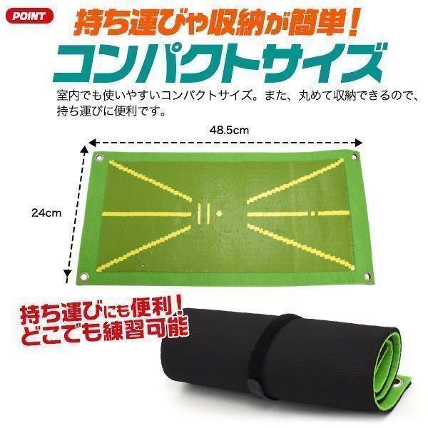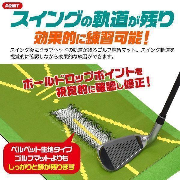 マットは緑ですが、クラブをスイングさせると摩擦により色が白く変化します。色が変わった部分を逆向きに撫でると、色が元通りになるためすぐに練習が再開できます。