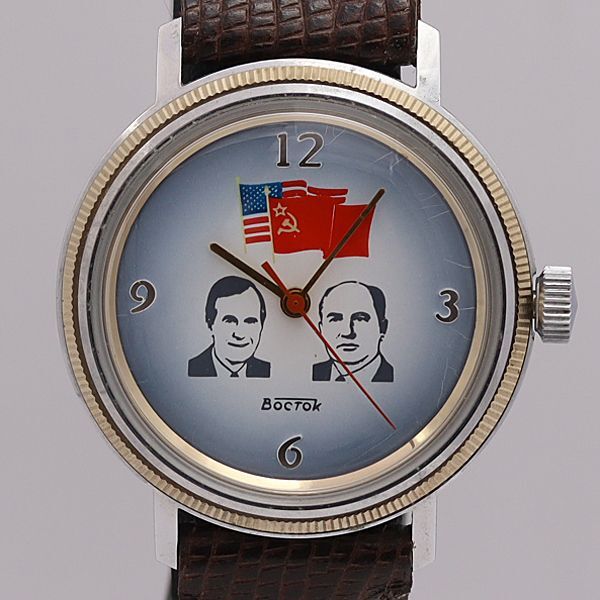 デッドストック級 稼働 良品 ボストーク 手巻き ゴルバチョフ&レーガン 青文字盤 ラウンド メンズ腕時計 7206ABC PRM2883000SMD