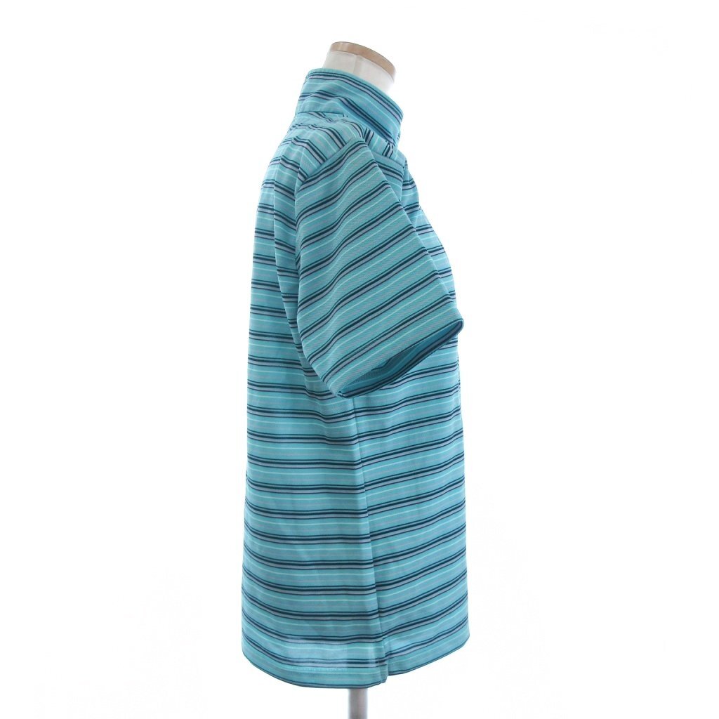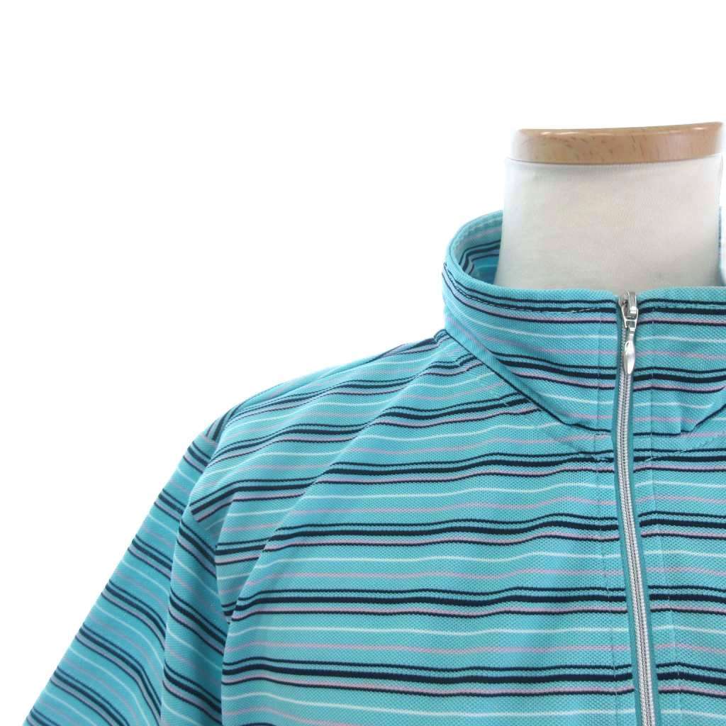 パーソンズ PERSON'S SPORTS 美品 ポロシャツ カットソー 半袖 ハーフジップ ボーダー 鹿の子 水色 LL ■FF レディース