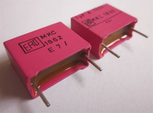 何も語る必要がない程の定番中の定番、EROのMKC1862シリーズです。ヨーロピアン、ドイツ王道、製品として質の高いすっきりとしたハイファイ感。音場がとても自然に感じられ、素早いスピード感の中にも優雅な雰囲気を持っています。ERO(現行VISHAY)は、20世紀、長期にわたりハイエンド・プロオーディオ機器に用いられてきたメーカーです。その実績から見ても、多くを語る必要がない逸品です。音質は、数あるフィルムコンデンサーの中でもとても透明感のある美しいものです。