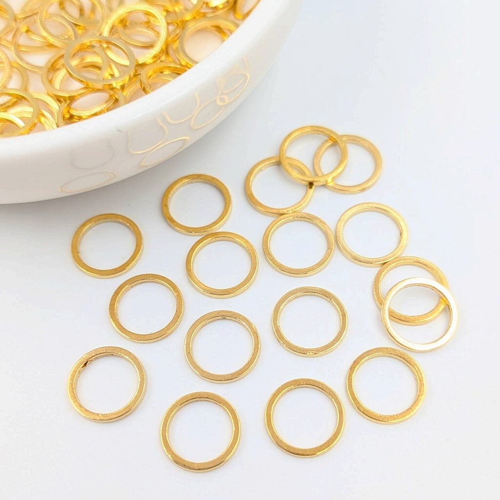 アクセサリーや雑貨作りに便利なメタルフープです。ゴールドカラーが華やかさをプラスし、ピアスやイヤリング、ネックレス、ブレスレットなど幅広い作品に活用できます。シンプルな形状で使いやすく、アクセサリー作り初心者から経験者まで幅広くご利用いただけます。