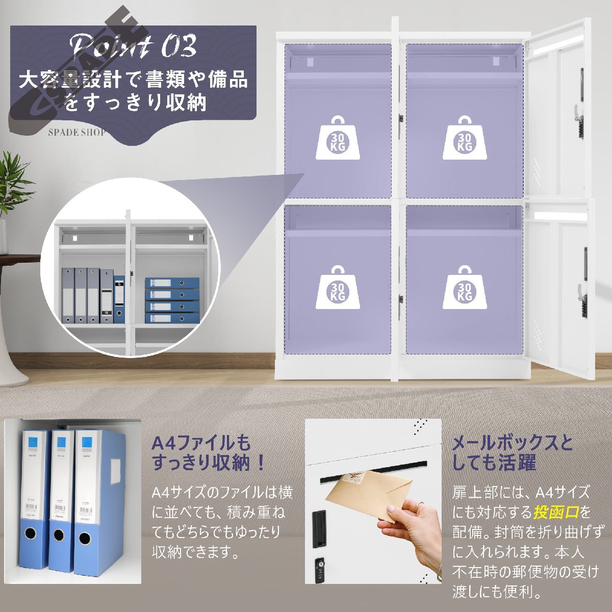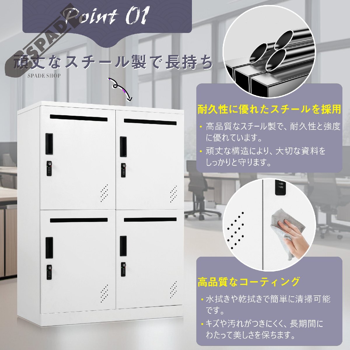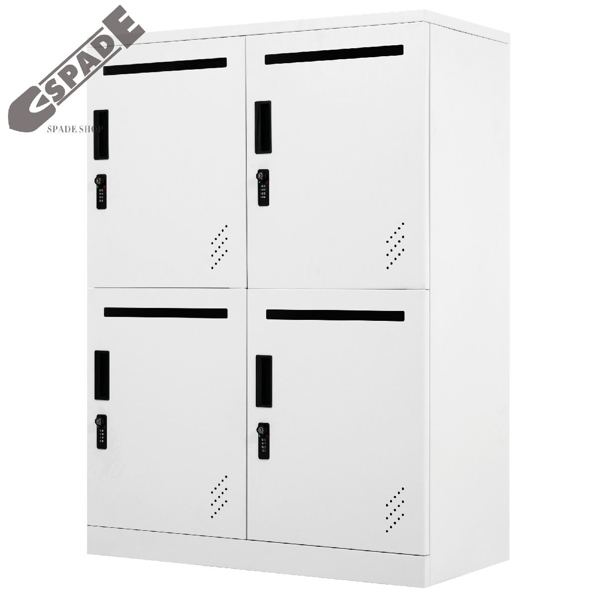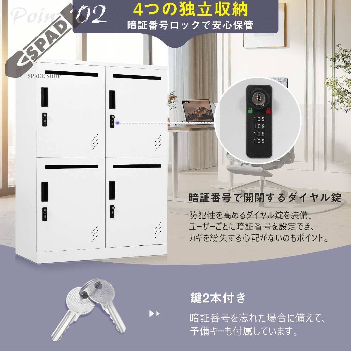 【国内発送】パーソナルロッカー 4人用 2段 スチール製 キャビネット 収納棚 スリム 収納 オフィス ホワイト