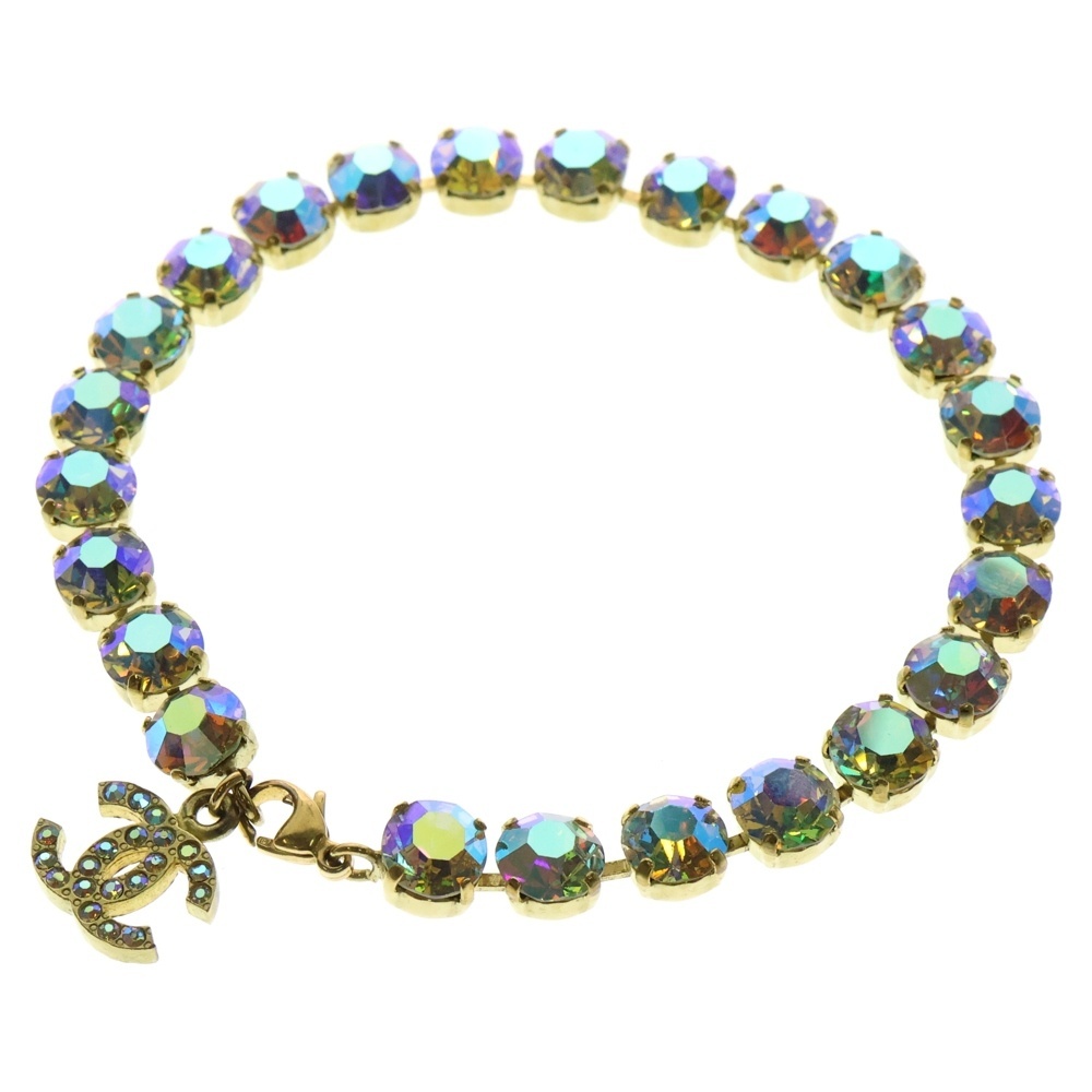 CHANEL シャネル オーロラビジュー ラインストーン ココマーク ブレスレット アンクレット ゴールド GP ヴィンテージ 95P