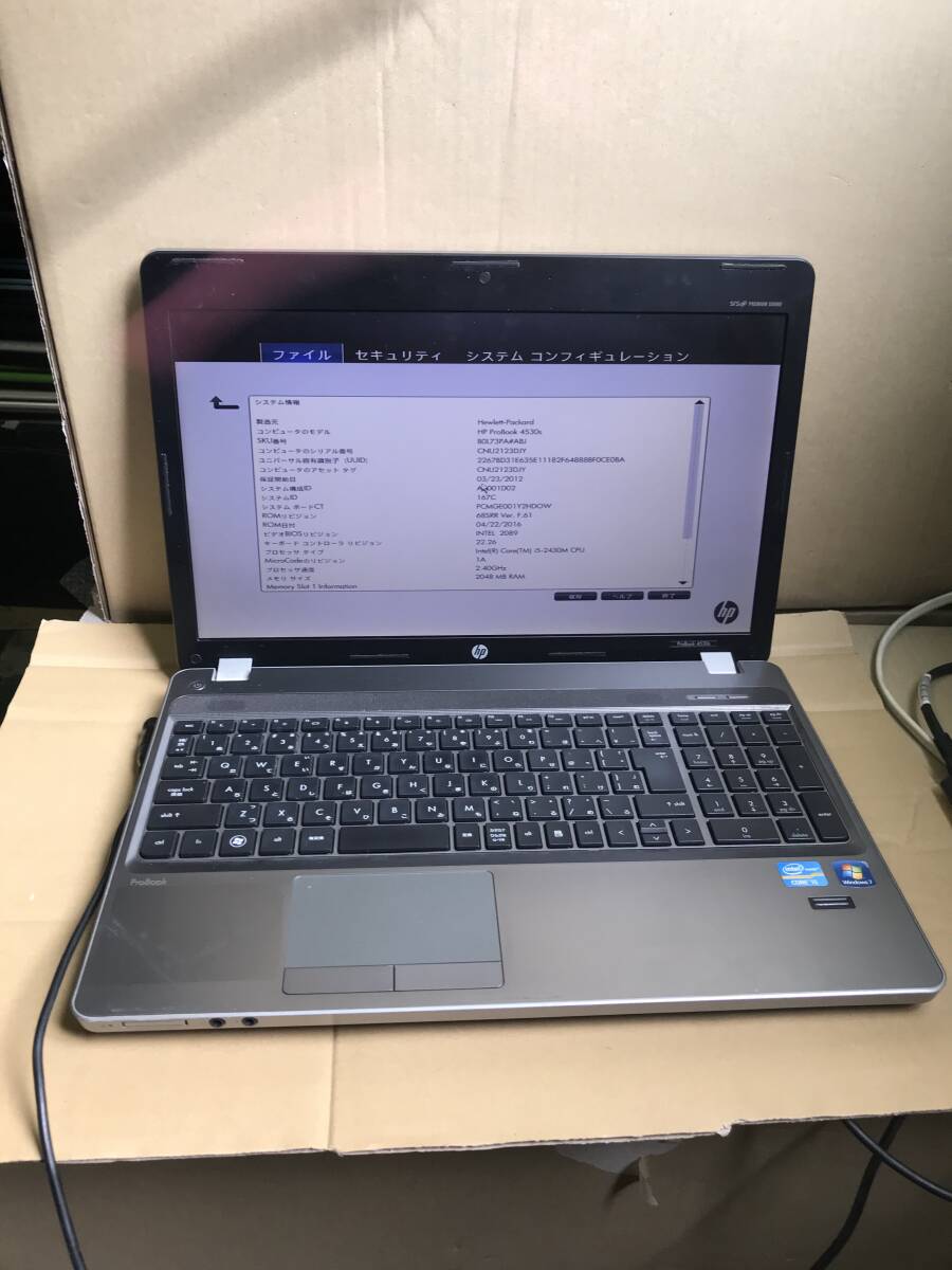 No.1★HP ProBook 4530s Intel Corei5-2430M CPU /2GBメモリ-/Sマルチ/15.6インチノートパソコン 中古品★