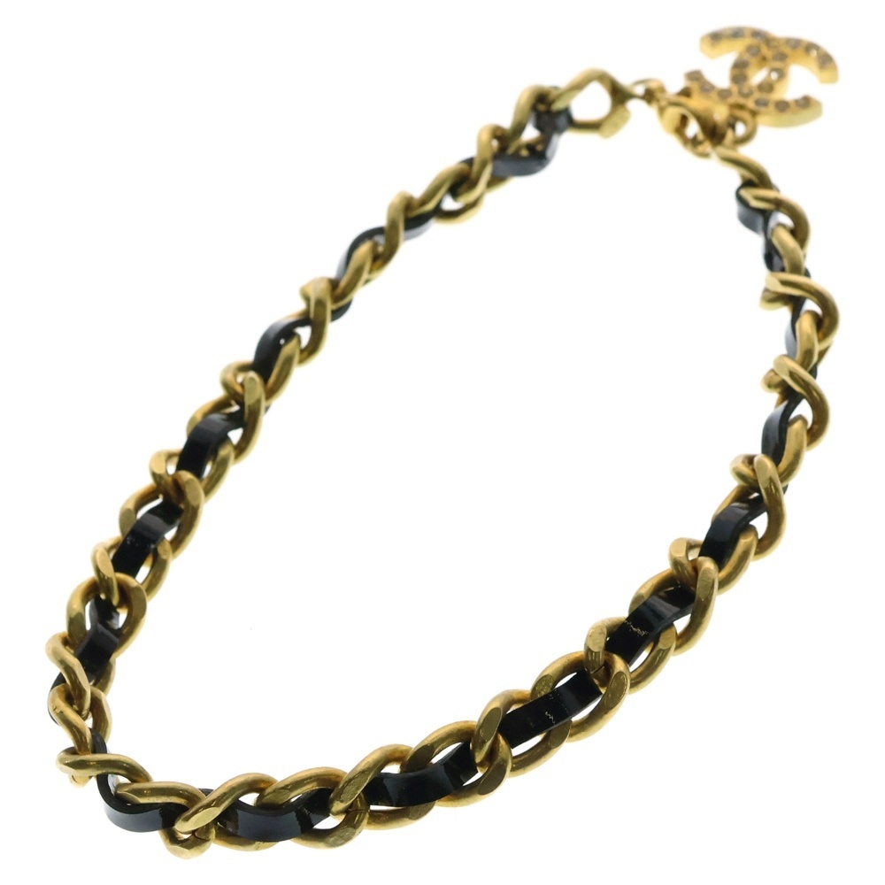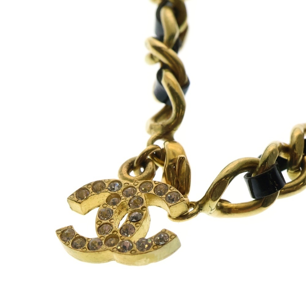 CHANEL シャネル ココマーク チェーンブレスレット アンクレット ブラック×ゴールド 革×GP ヴィンテージ 95P