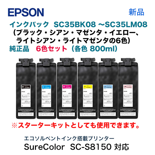 【純正品 6色セット】 EPSON/エプソン SC35 08シリーズ(各色800ml) インクカートリッジ 新品 (大判プリンター SureColor SC-S8150 専用)