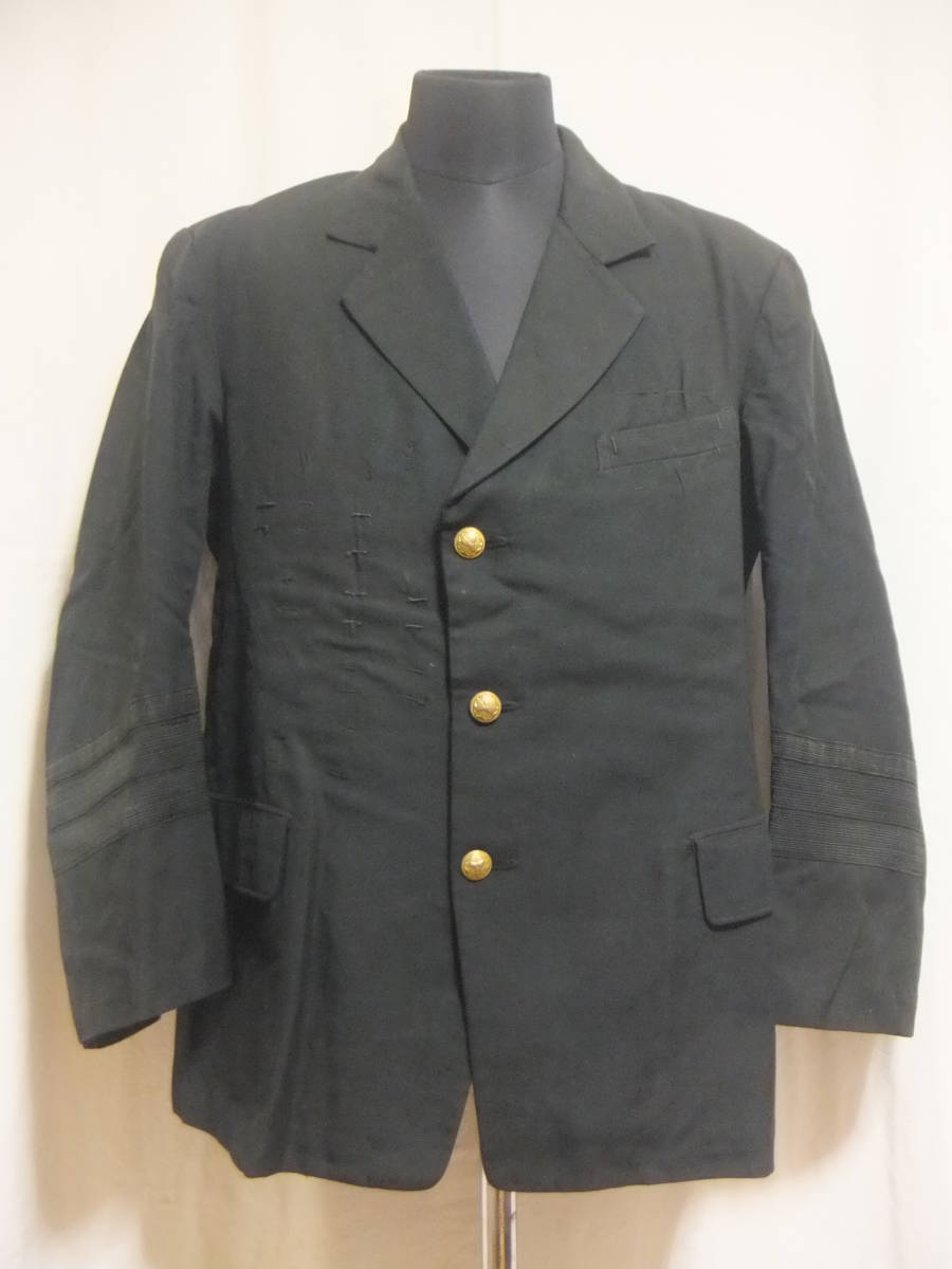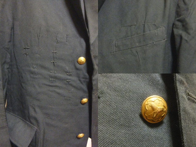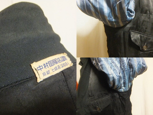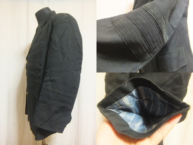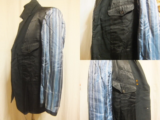 昭和期のテーラードジャケットで当時のメーカータグもあり何か代用品で使用されていたのか前身頃にはひっかけ糸が多数みられます。