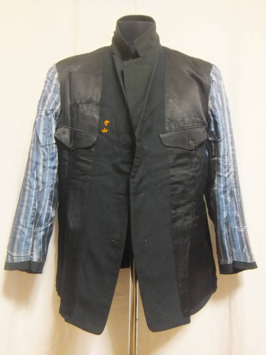 お色は黒で古い物になりますので少々の汚れございますが着用に問題はございません。舞台衣装や店頭ディスプレイアイテム、資料などにもいかがでしょうか。