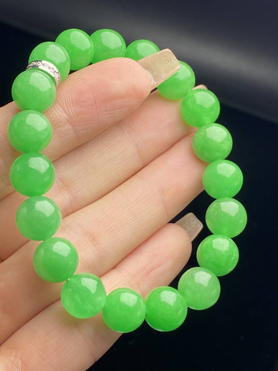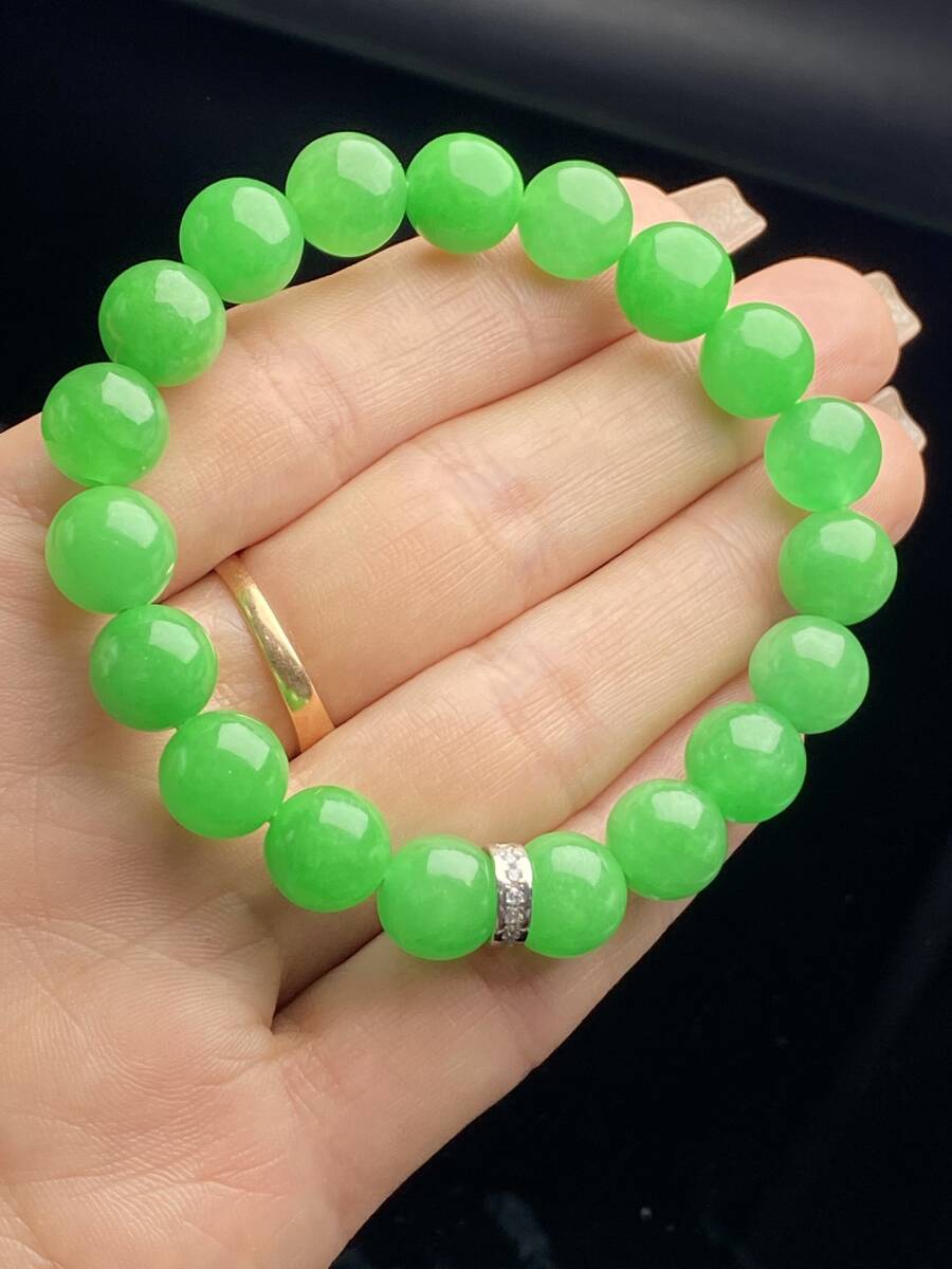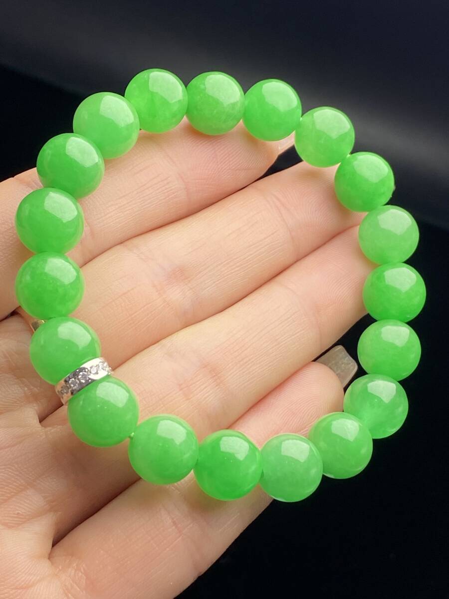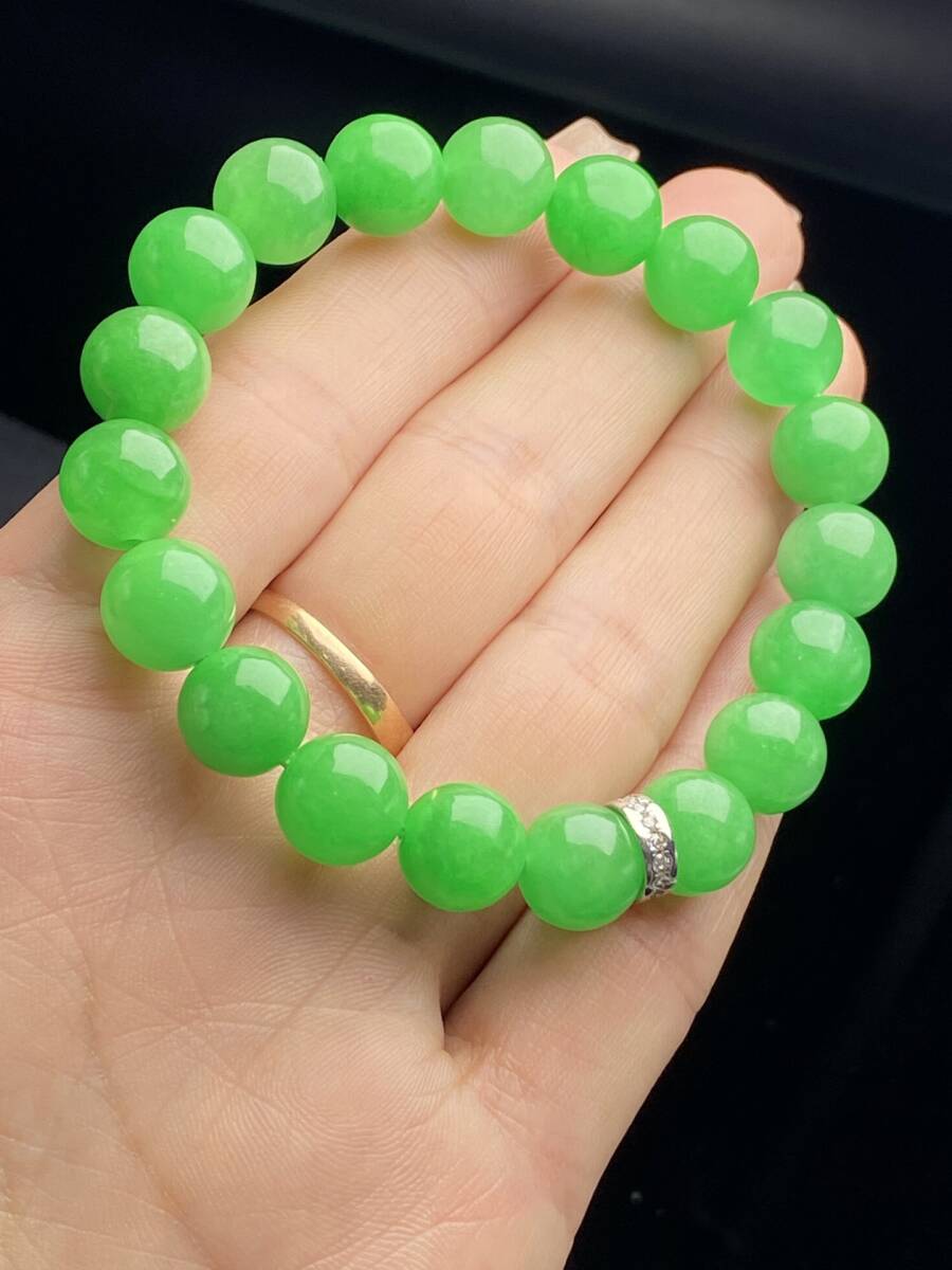 Aグレード翡翠 冰種翡翠 糯種 陽綠 圓珠 綠翡翠 手鏈 手串 腕輪 首飾 贈り物 箱付き時代物 骨董品 旧家蔵出し 唐物 中国古玩 古美術品