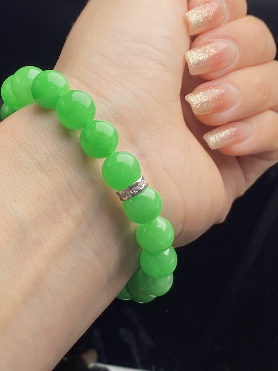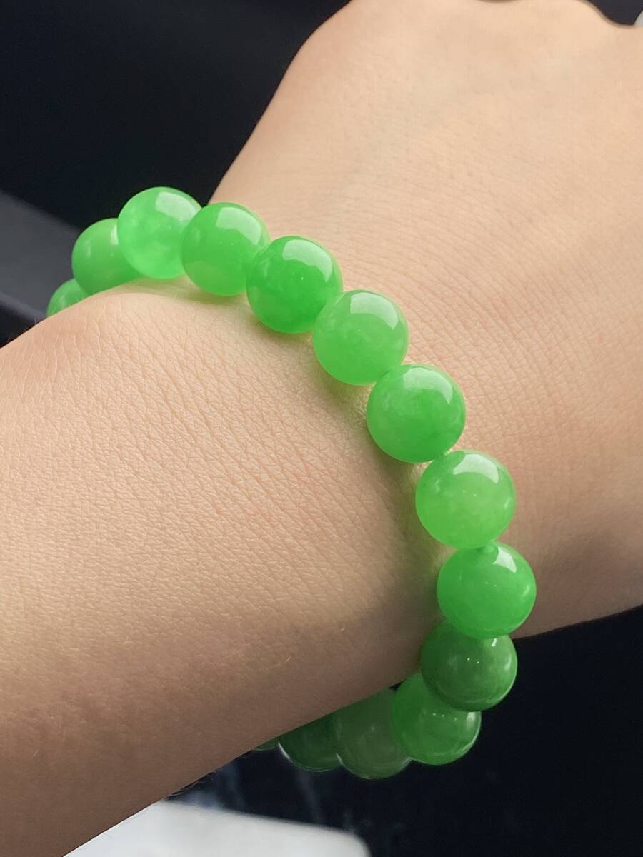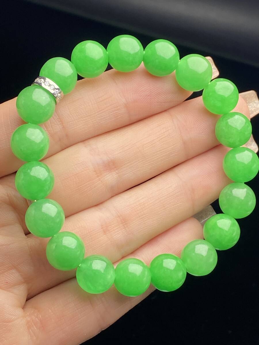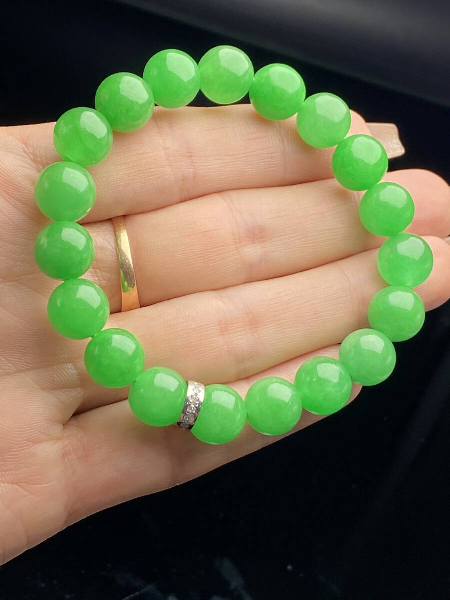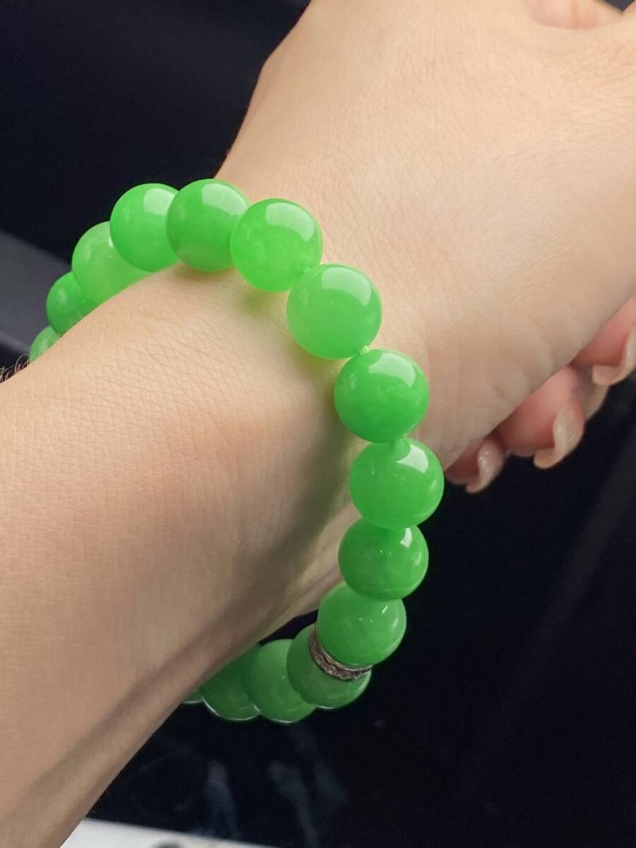 Aグレード翡翠 冰種翡翠 糯種 陽綠 圓珠 綠翡翠 手鏈 手串 腕輪 首飾 贈り物 箱付き時代物 骨董品 旧家蔵出し 唐物 中国古玩 古美術品