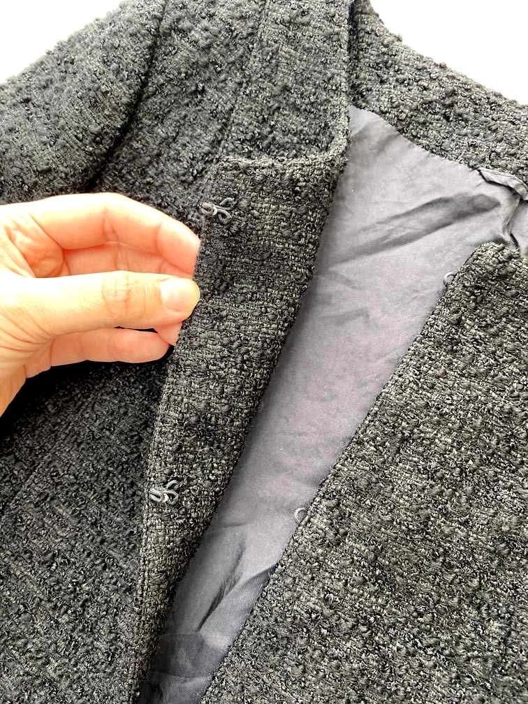商品の状態 | 品質表示タグかすれ ホック留め部分にの先端生地抜け 脇裏地に薄汚れ 商品に目立つヨゴレなど無く、USEDとして良い状態です。 (当方管理番号:lrfi105295-t) | ||||||||||
