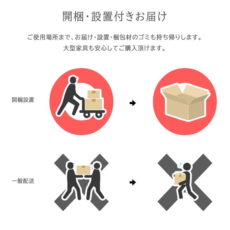 開梱設置付き(脚の取り付けとなりますので、ロータイプでご使用の場合は、業者にお伝えください。)