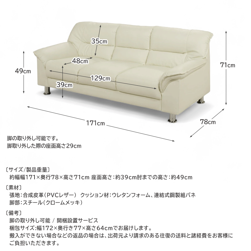 3人掛けアイボリーの販売ページです。