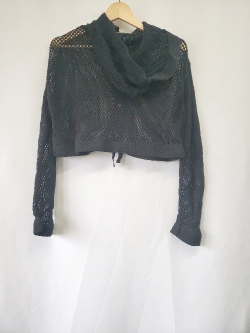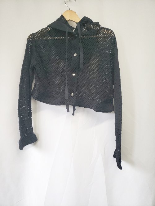 ◇ ⊂ MOUSSY マウジー メッシュ ショート丈 長袖 パーカー サイズF ブラック系 レディース E