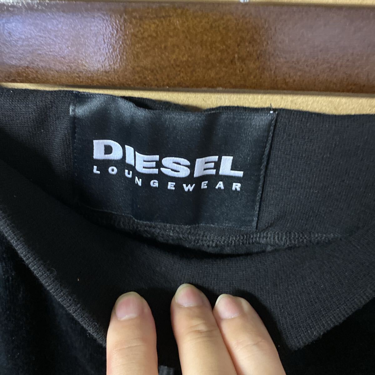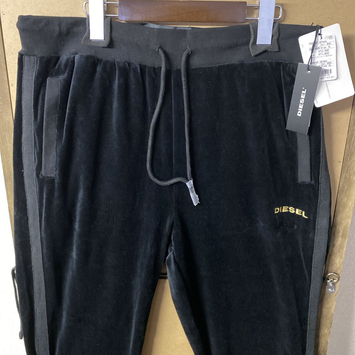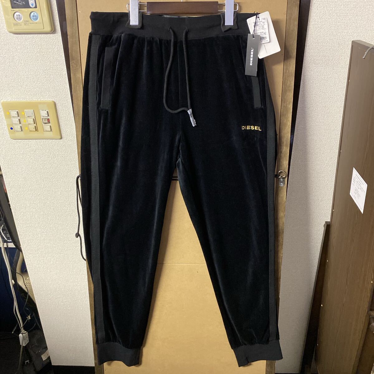 ゴールドのDIESELのロゴ刺繍が目を引くジョガーパンツ。