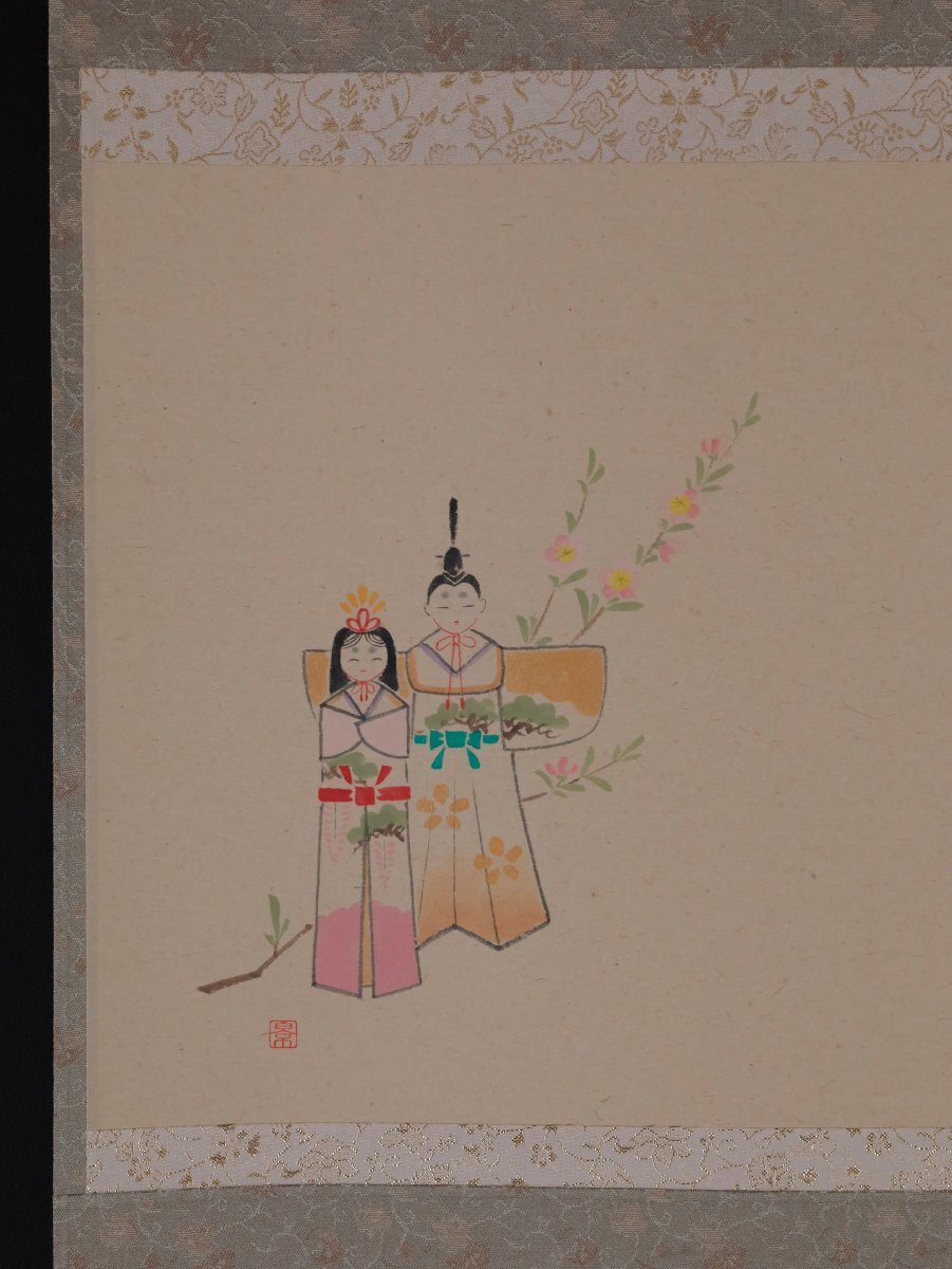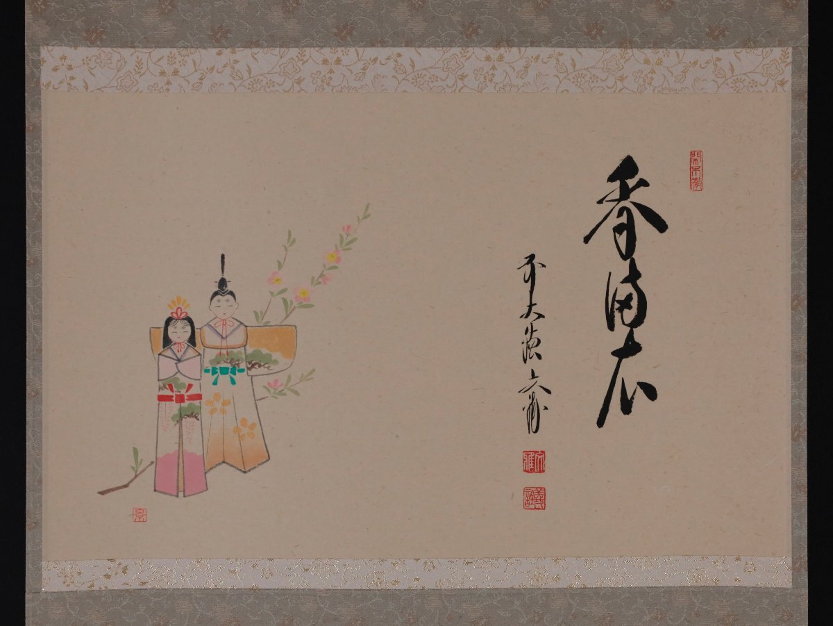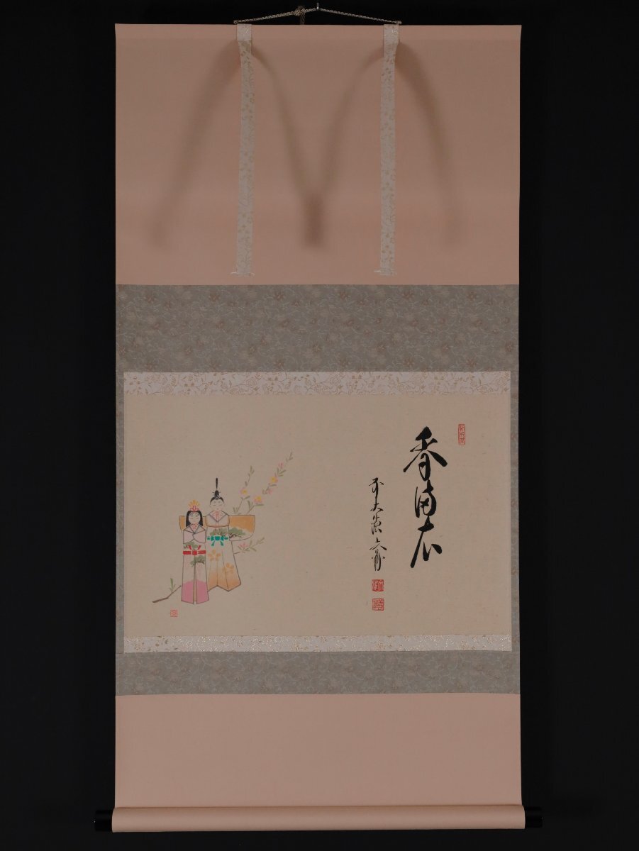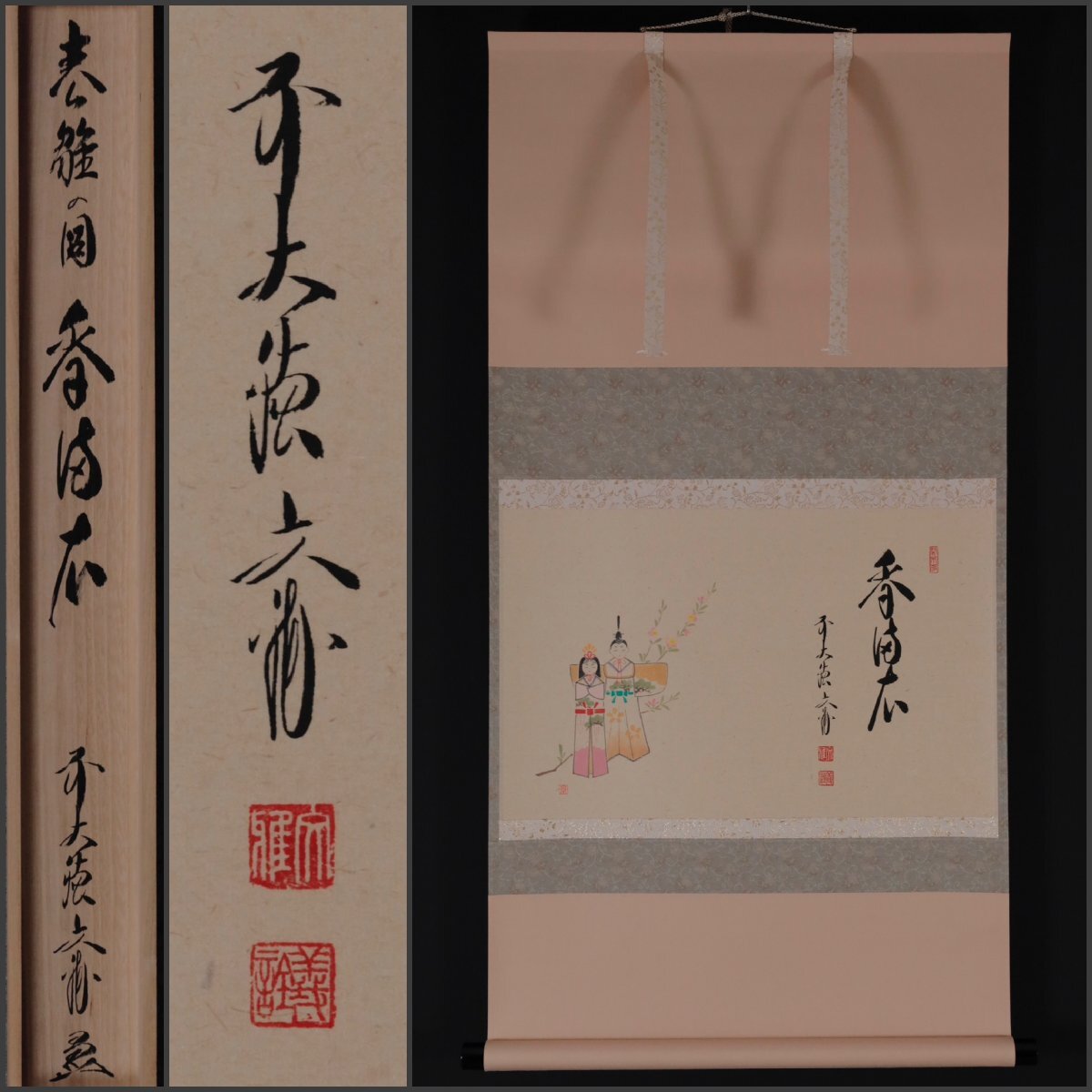 【模写】吉】12863 法谷文雅 雛画賛「香満衣」 共箱 小田雪窓師事 臨済宗 大徳寺派 逢春寺住職 仏教 茶掛け 茶道具 禅語 書 掛軸 掛け軸