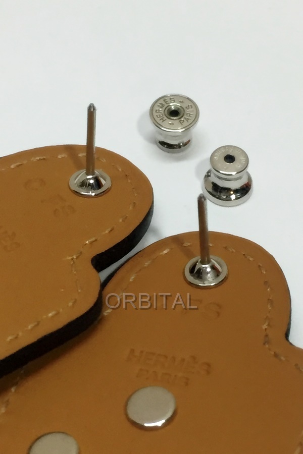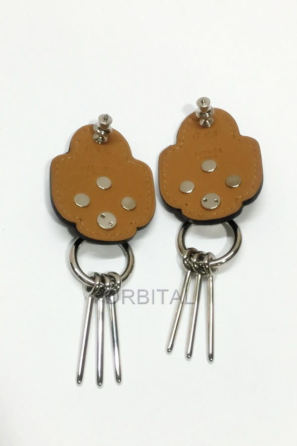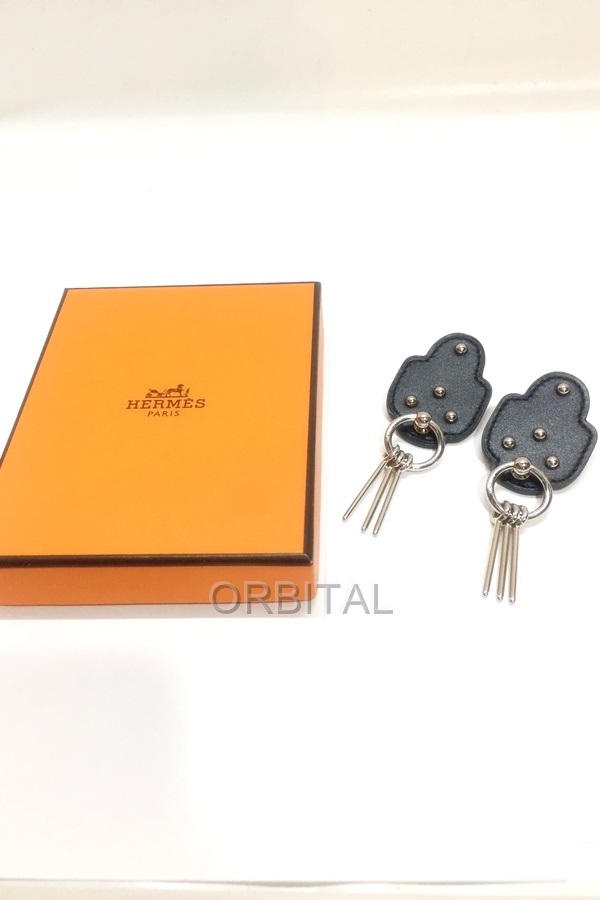 代官山)HERMES エルメス CARNABY カーナビー レザーピアス ブラック×シルバー C刻印 箱付き
