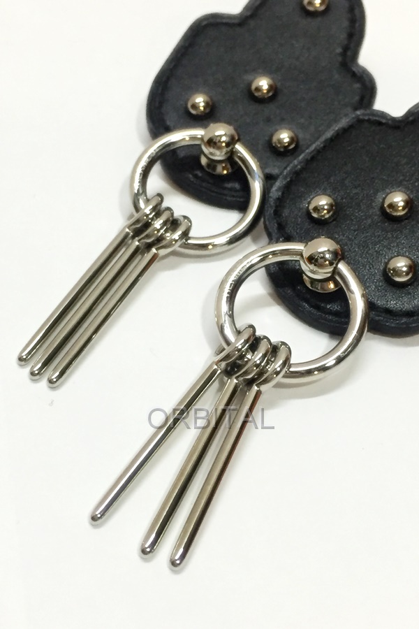 HERMES エルメス CARNABY カーナビー レザーピアス ブラック×シルバー C刻印 箱付き