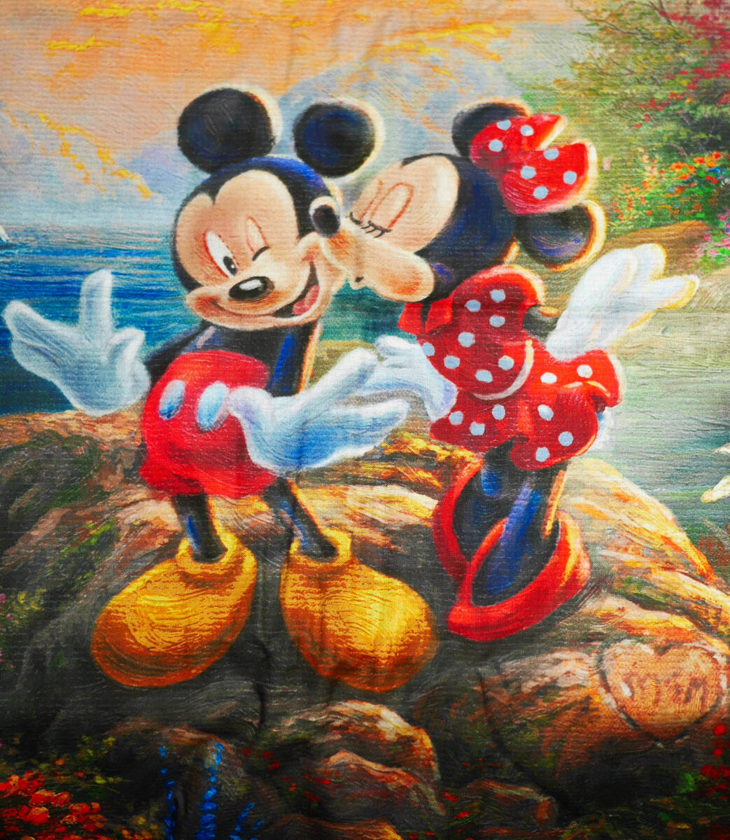 アメリカ ミッキー ミニー 入り江 86×110 USAコットン ディズニー パネル生地 c プリント生地