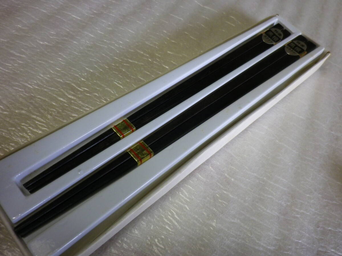 銘木手作り夫婦箸 黒檀 未使用長期保管品
