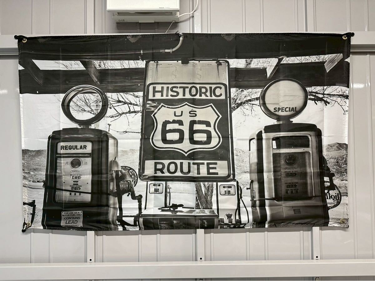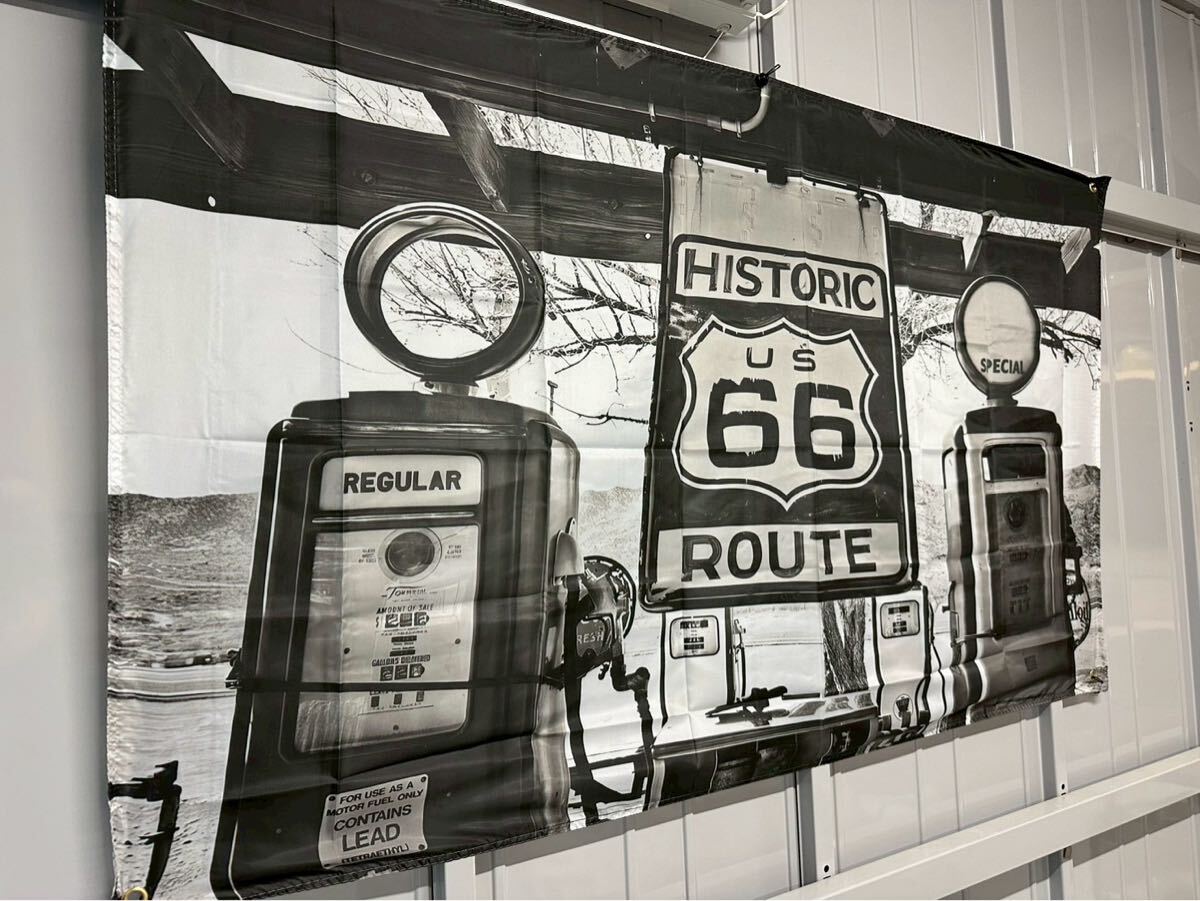 送料無料 150x90cm 特大 フラッグ ヴィンテージ ルート66 ガレージ装飾 お部屋の装飾 バナー 旗 アメリカン アメ車 レトロ 看板 雑貨