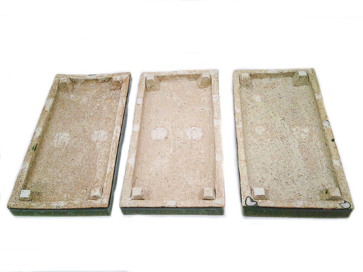 ★2【未使用品】 金本卓也 大和織部 足付長角皿 3枚 和食器 焼き物 陶磁器★/H