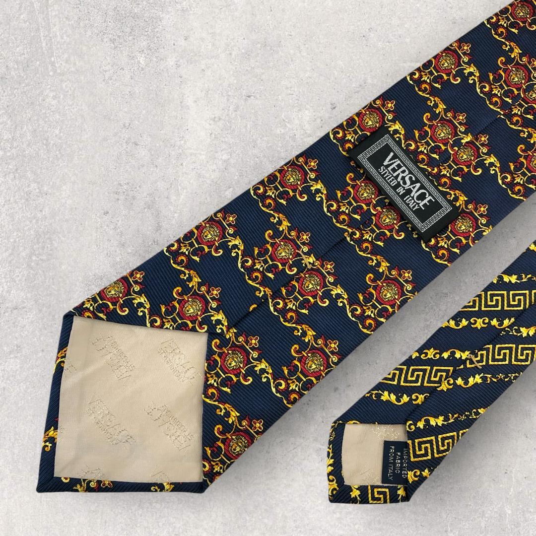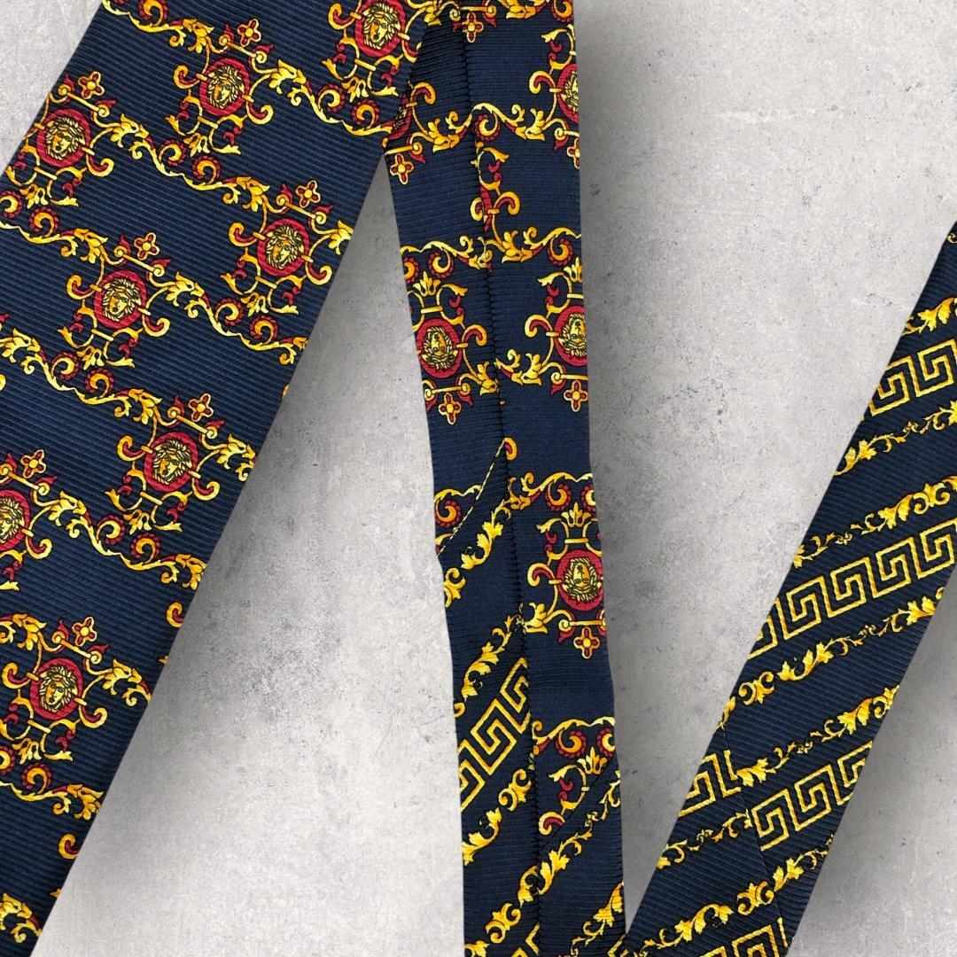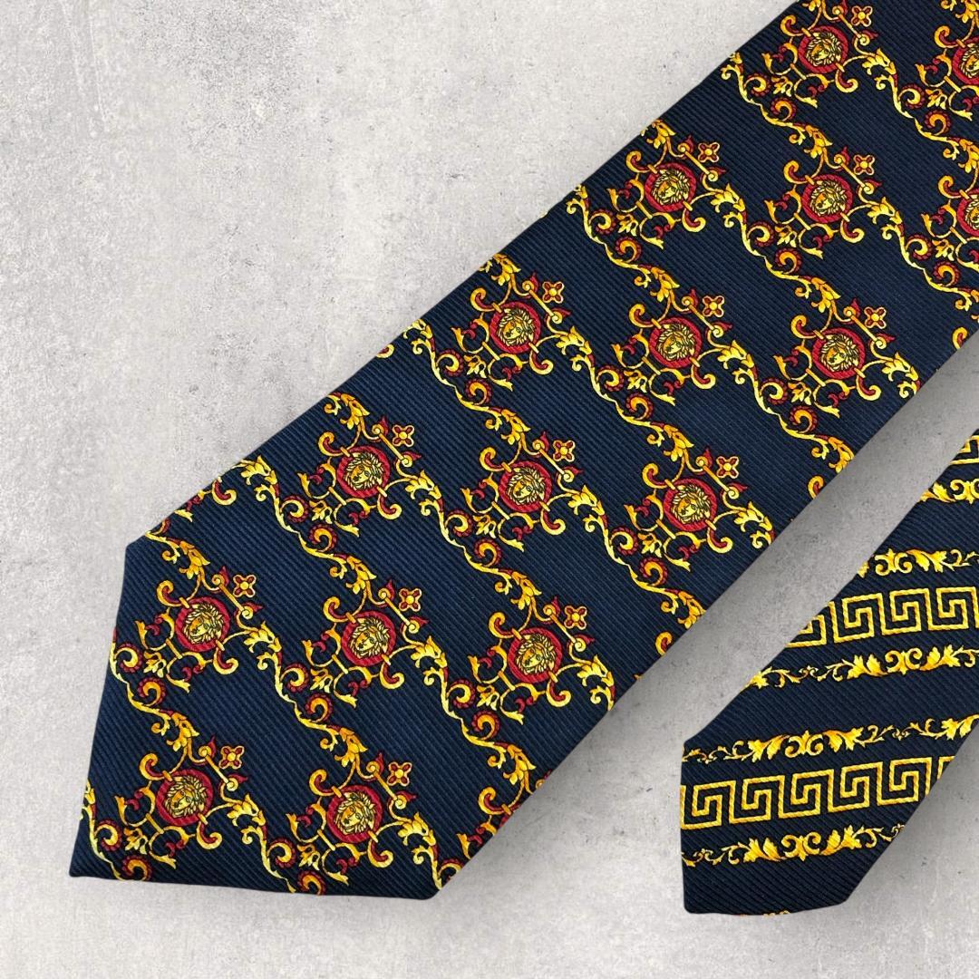 【6647】美品!ヴェルサーチ ネクタイ ブルー系 メデューサ柄.