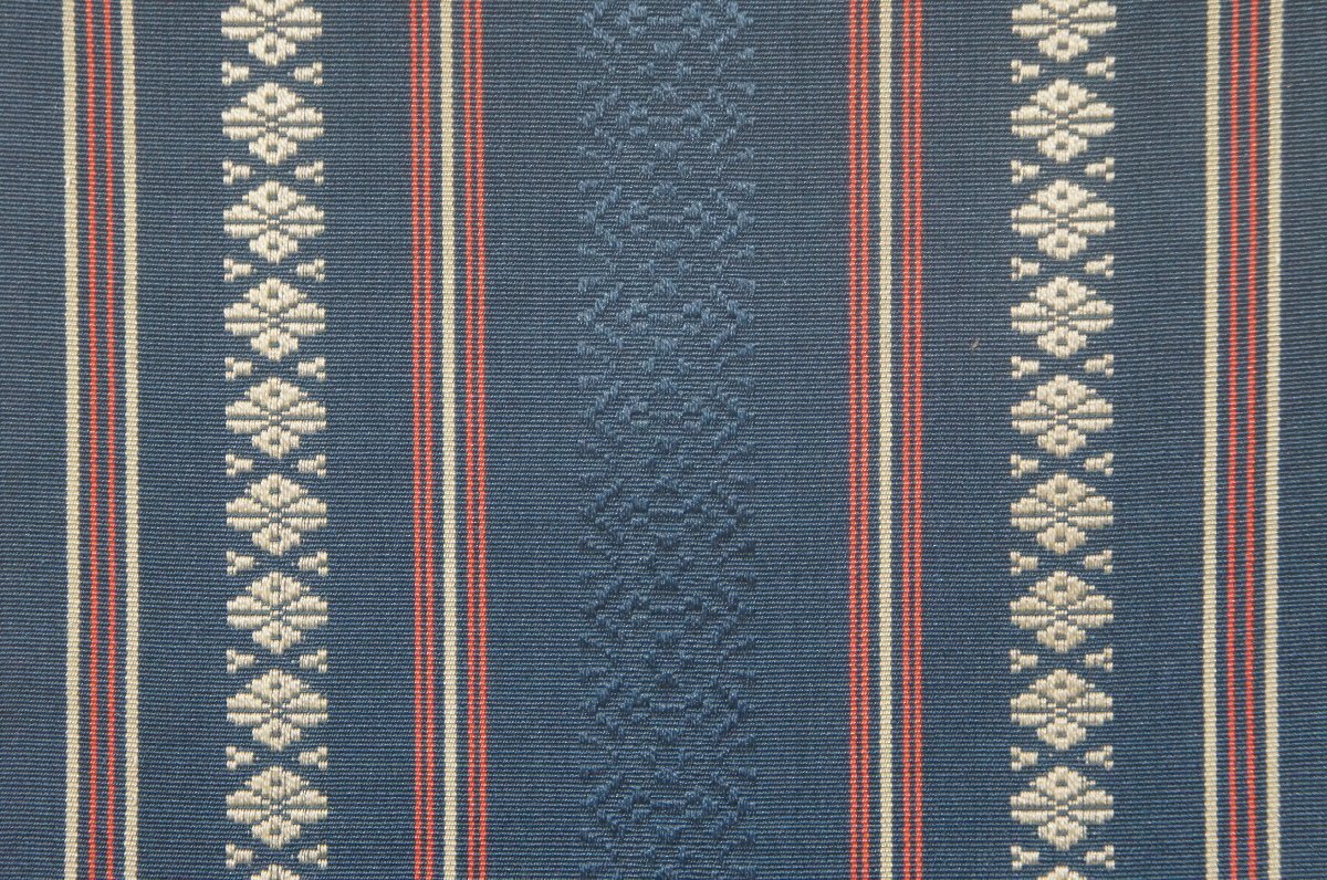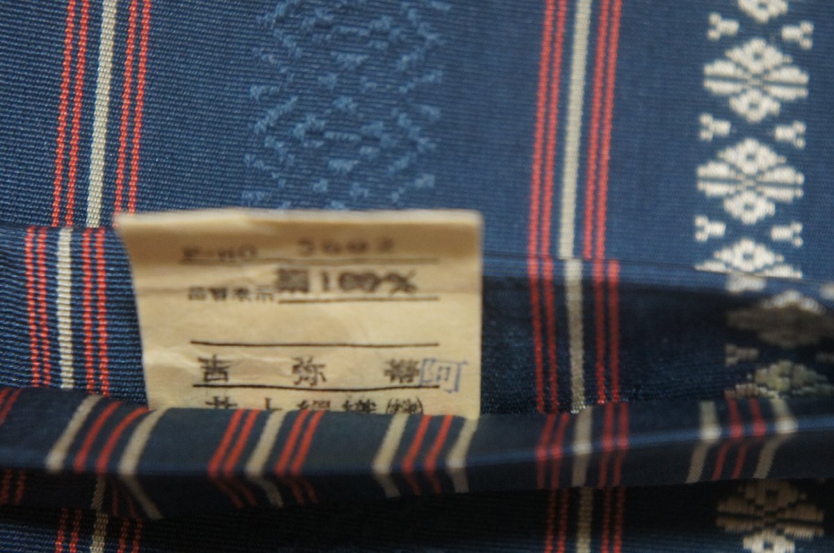帯柄附全通柄 深藍色地献上模様縞模様小袋吉弥帯