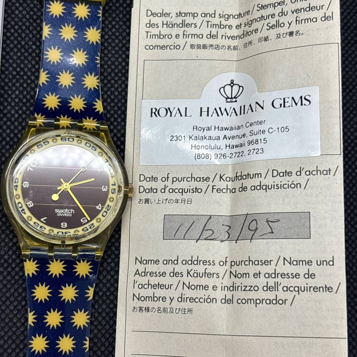 Swatch スウォッチ SRJ100 ソーラーモデル 1995年 "Lots of Suns" (ジャンク品)