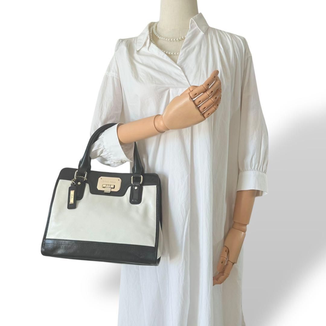【美品】COLE HAAN コールハーン レザー ハンドバッグ かばん 鞄 B5 ゴールド金具 仕事 お食事会 y2k ラグジュアリー バイカラー S2968