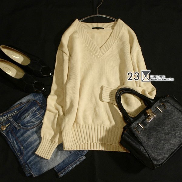 美品 オンワード樫山 23区 シルク・コットン 厚手 ニット セーター 38号 M 春 秋 合服 25E08
