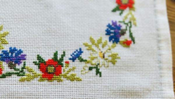 ![]() 北欧スウェーデン☆コットン 白地 春のお花のリース クロス  |