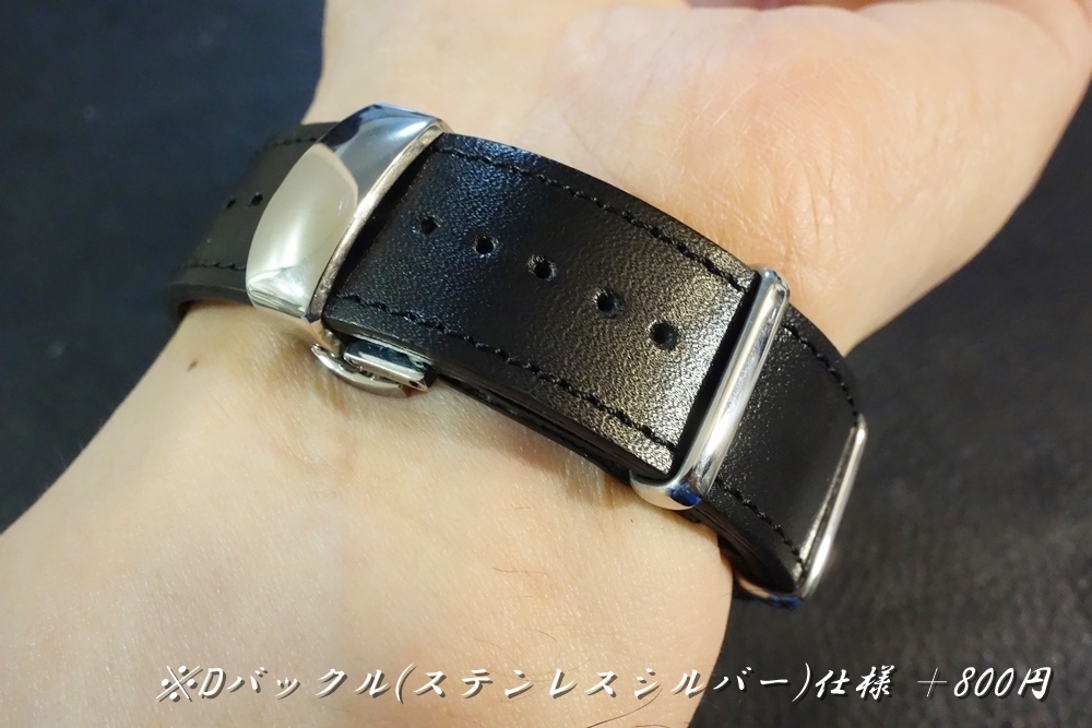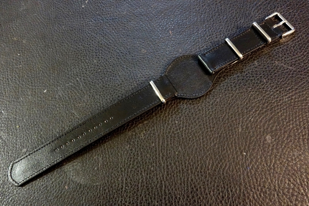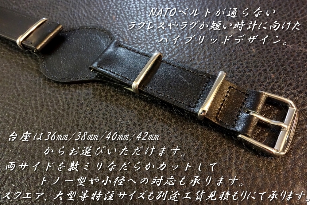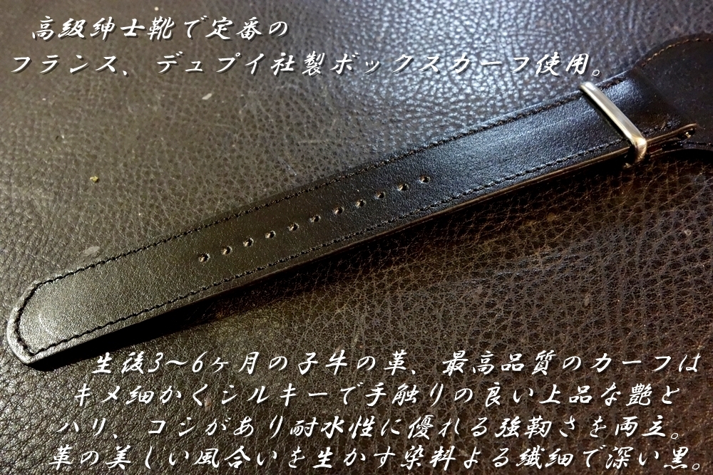 ◆台座付 NATOデザインベルト◆フランス デュプイ社 ボックスカーフ BLACK カスタムオーダー(ラグ幅/台座幅/バックルカラー) 受注生産 (納期10日前後) |